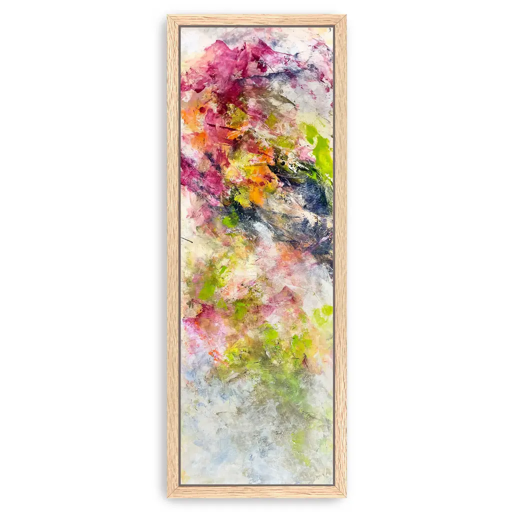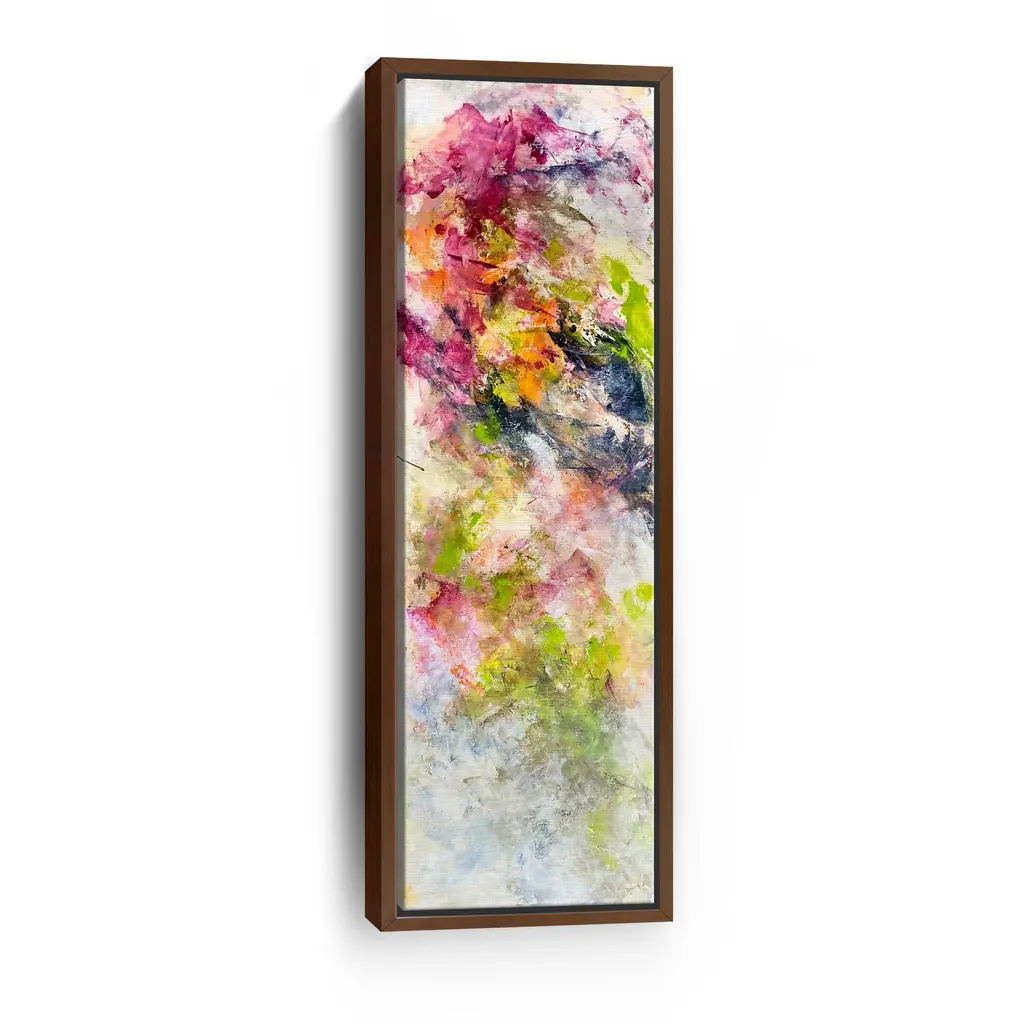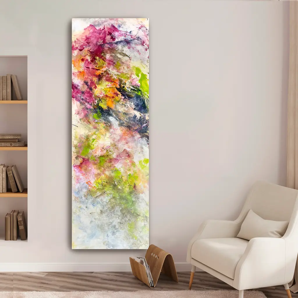 A captivating burst of vibrant pinks, purples, greens, and soft blues melds together in a fluid, energetic dance of color and texture. This abstract masterpiece brings a sense of motion and emotional depth, perfect for adding bold artistic expression to any space. Our Gallery Wrap Canvas Prints are proudly assembled with high quality materials in California, USA. Each piece is printed on a thick, archival grade canvas using Giclee technology. It is then hand-stretched by our experienced artisans over solid wood bars, which will not warp over time. The final product is a piece personally crafted for you to confidently display on your wall. Care and Assembly: Ensure that the location of your piece has little to no exposure to heat, sunlight, and moisture. Wipe clean, only if needed. Each piece includes hanging hardware to hang on your wall vertically.