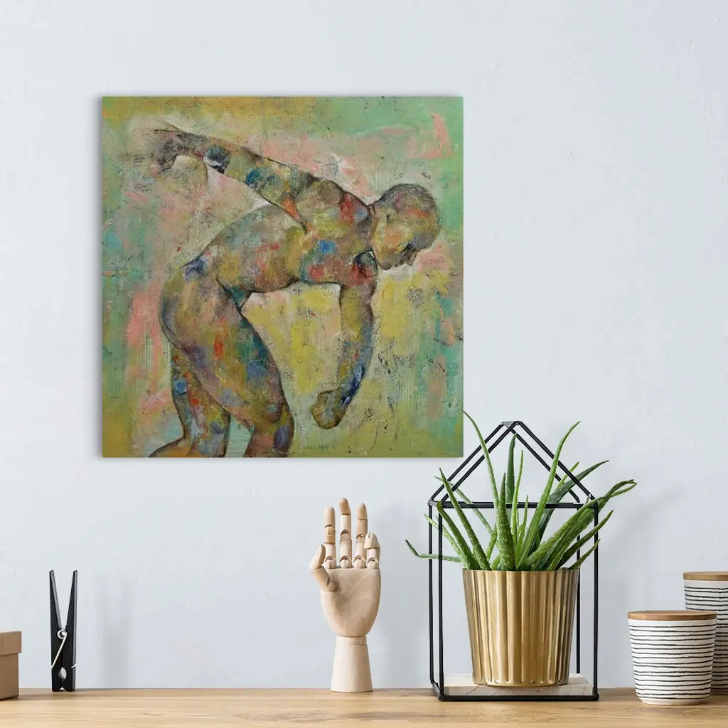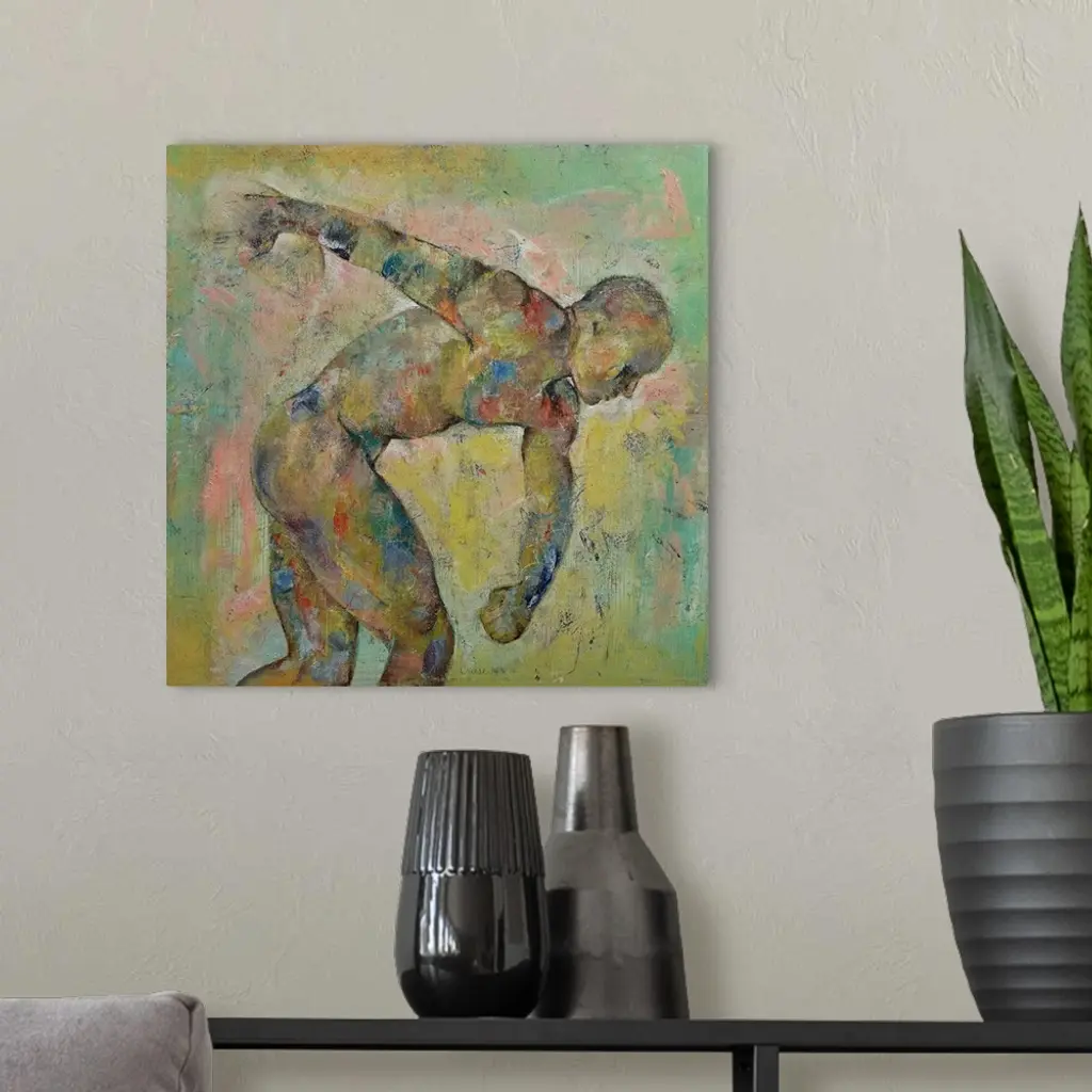 A contemporary painting of a nude male discus thrower.