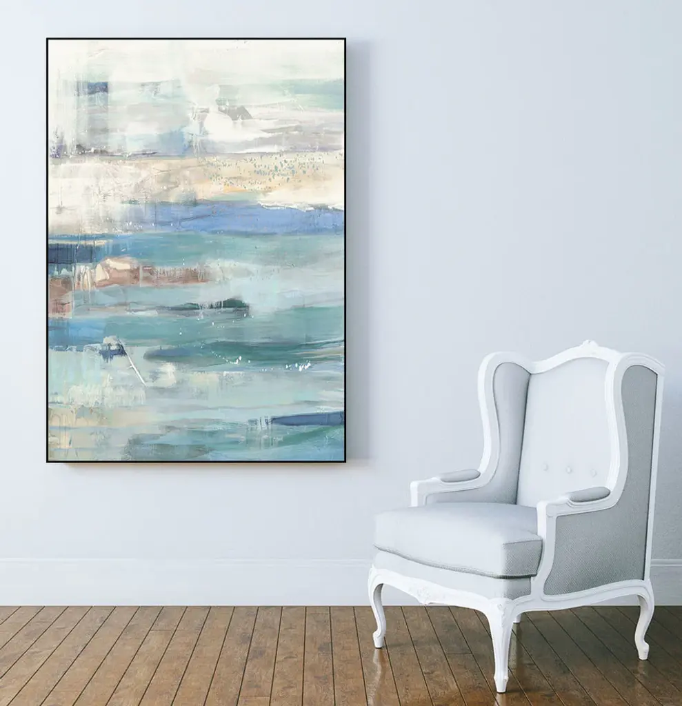 Your ready to hang artwork is printed on canvas then stretched and mounted to a 2-inch thick - hand stained black wood frame. Arrives at your door complete with an easy to use self-leveling hangking kit.