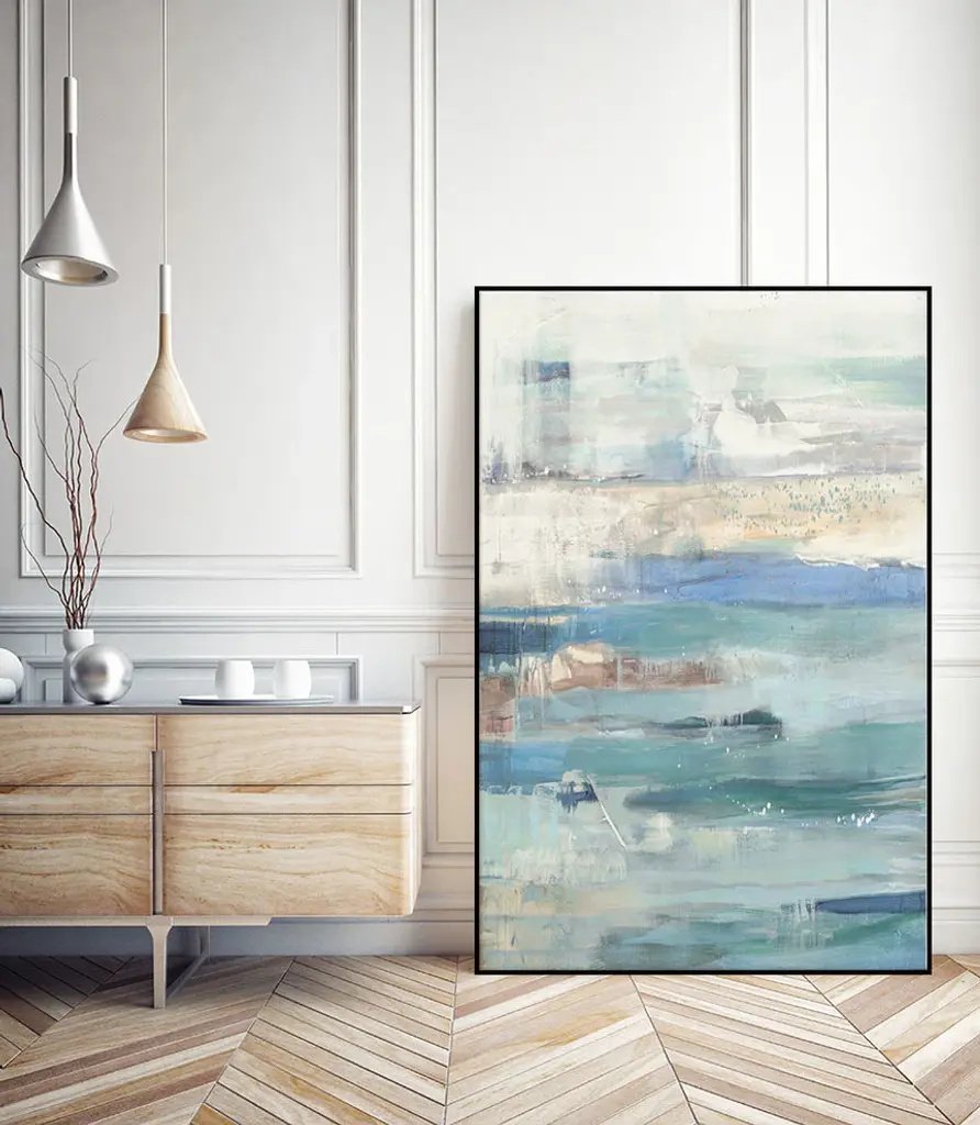 Your ready to hang artwork is printed on canvas then stretched and mounted to a 2-inch thick - hand stained black wood frame. Arrives at your door complete with an easy to use self-leveling hangking kit.