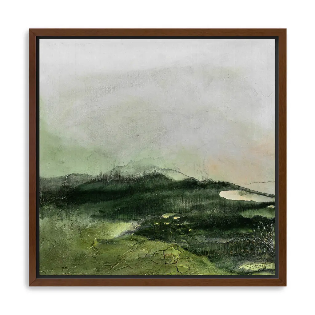 Transform your space with this mesmerizing green abstract moody landscape "Distant Pines" canvas art by Ruth Fromstein. Featuring deep green tones and dynamic compositions, this artwork evokes a sense of mystery and tranquility. The rich colors and captivating design create an atmosphere of sophistication and elegance, making it an ideal statement piece for both contemporary and classic interiors. Available in black frame, dark walnut frame, oak frame, or as a wrapped canvas. Our Gallery Wrap Canvas Prints are proudly assembled with high quality materials in California, USA. Each piece is printed on a thick, archival grade canvas using Giclee technology. It is then hand-stretched by our experienced artisans over solid wood bars, which will not warp over time. The final product is a piece personally crafted for you to confidently display on your wall. Care and Assembly: Ensure that the location of your piece has little to no exposure to heat, sunlight, and moisture. Wipe clean, only if needed. Each piece includes a sawtooth hanger to hang on your wall horizontally.