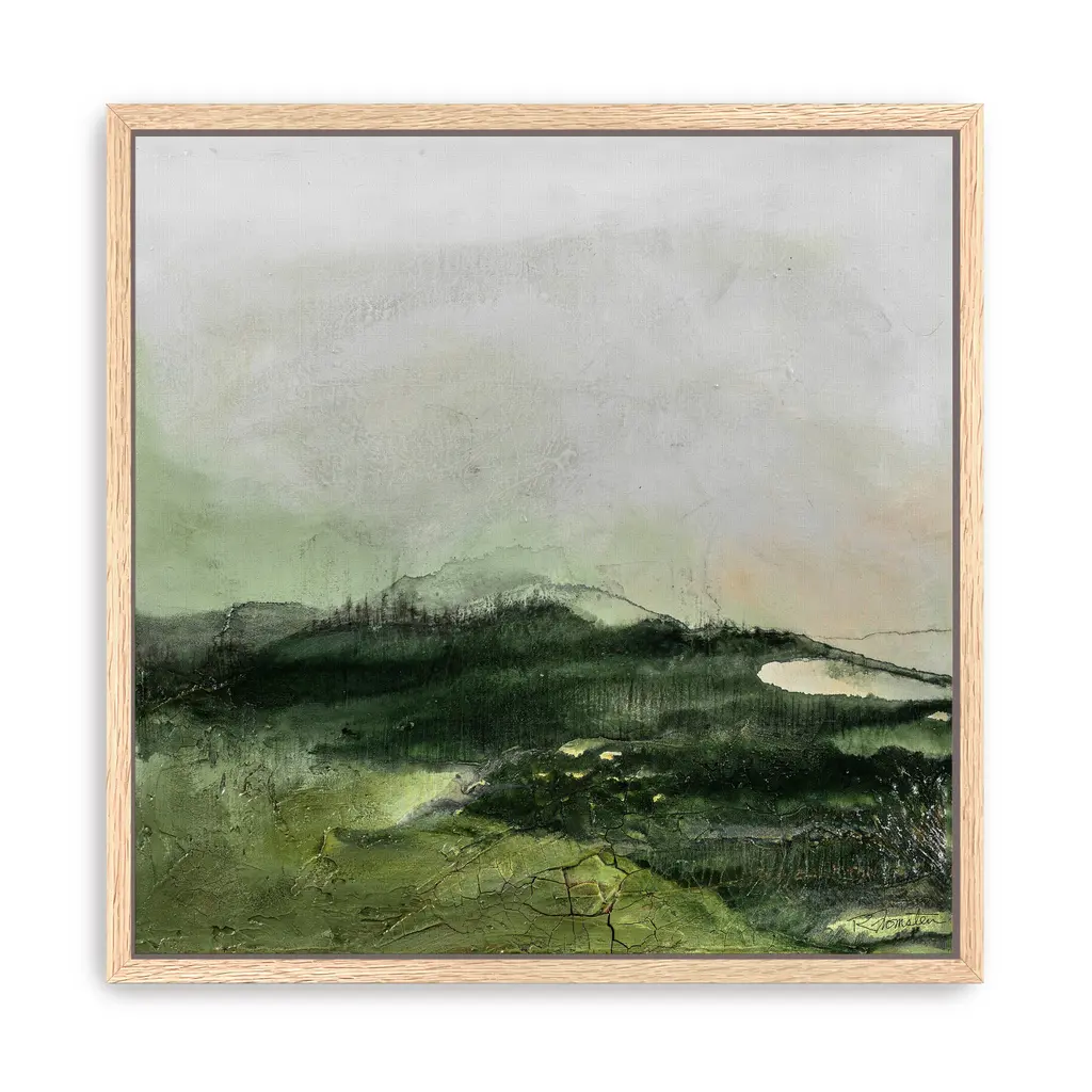 Transform your space with this mesmerizing green abstract moody landscape "Distant Pines" canvas art by Ruth Fromstein. Featuring deep green tones and dynamic compositions, this artwork evokes a sense of mystery and tranquility. The rich colors and captivating design create an atmosphere of sophistication and elegance, making it an ideal statement piece for both contemporary and classic interiors. Available in black frame, dark walnut frame, oak frame, or as a wrapped canvas. Our Gallery Wrap Canvas Prints are proudly assembled with high quality materials in California, USA. Each piece is printed on a thick, archival grade canvas using Giclee technology. It is then hand-stretched by our experienced artisans over solid wood bars, which will not warp over time. The final product is a piece personally crafted for you to confidently display on your wall. Care and Assembly: Ensure that the location of your piece has little to no exposure to heat, sunlight, and moisture. Wipe clean, only if needed. Each piece includes a sawtooth hanger to hang on your wall horizontally.