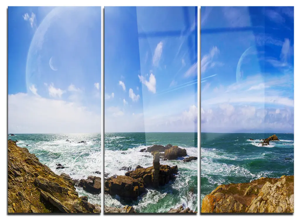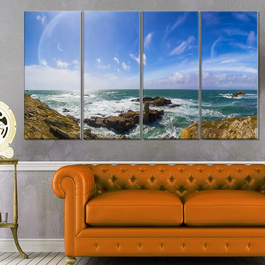 "Distant Planet System From Cliffs" Large Wall Artwork, 4 Panels