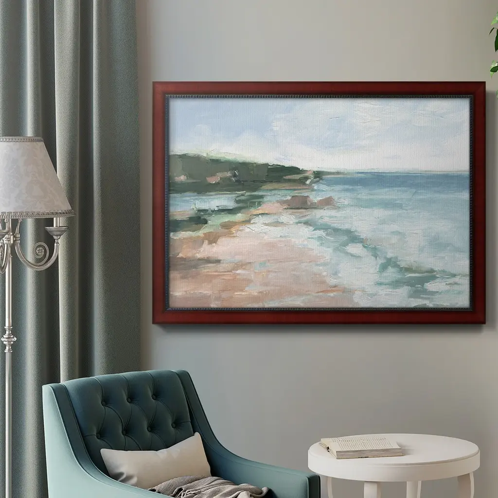 Distant Regatta II Premium Framed Canvas- Ready to Hang A Premium Framed Canvas created to last. Framed in distressed wood and available in an array of sizes and colors Featuring a beveled a solid wood stretcher bar, each piece comes ready to hand 3 SIZES AVAILABLE 16''X20'' - Overall Size 18'X27'' - Overall Size 24''x36'' - Overall Size Each piece is made to order. Each piece comes with hanging hardware. Made in the USA Ready to Hang Giclee Paper Print Acrylic Glass Beveled Matt Board