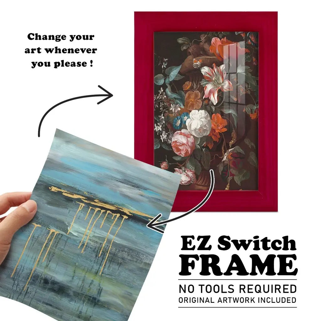 Distant Shores I -EZ SWITCH Framed Print w/glass-Cherry Red A delightful, framed print. Featuring a solid wood frame with real wood glass. This premium print is giclee quality. In addition, every frame features a removable back and table top stand. This allows you to change your art in the future or to just stand the art on a table for a new look. We are sure you'll enjoy our new series of EZ SWITCH Framed Art. Solid Wood Frame Real Glass Removable / Replaceable Art Built in Tabletop Stand Sizes range from 4x6 up to 12x15 - buy just one or pair them up as sets as you see fit.