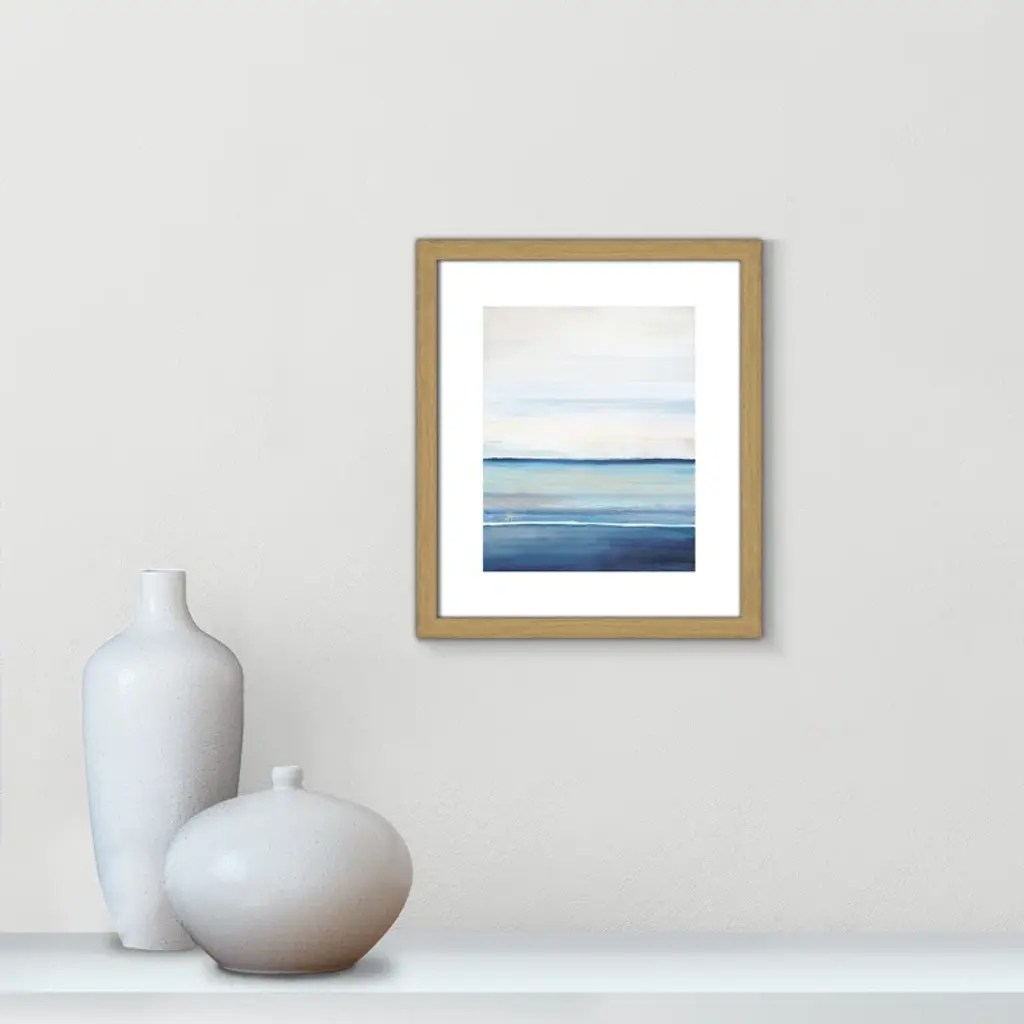 Rich blues and crisp whites give this painting print its seaside-like charm. This painting is printed on your choice of fine art paper or canvas using an acrylic painting-inspired technique. You also get to choose the frame or canvas color, so you can easily pair this painting with your existing decor, as well as both vibrant and neutral aesthetics. Offered in a wide variety of size options, this panting also comes with hanging hardware, so it's easy to add to spaces and places of all shapes and sizes.