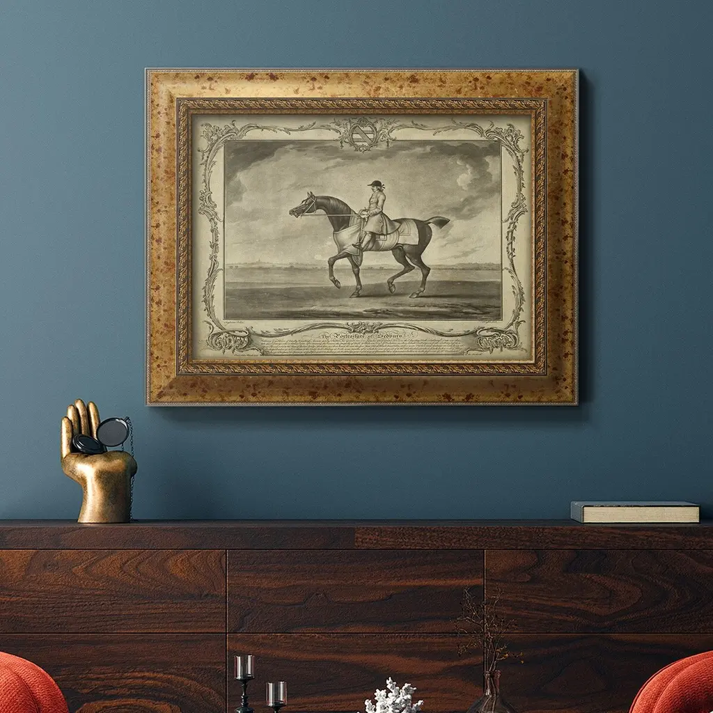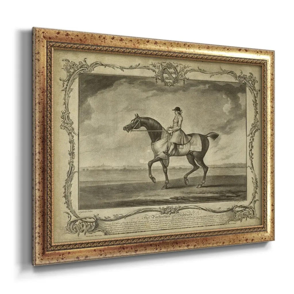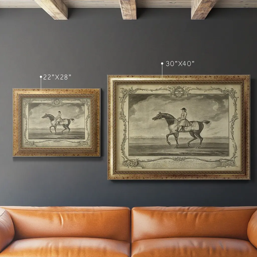 Distinguished Horses II Premium Framed Canvas- Ready to Hang A Premium Framed Canvas created to last. Framed in distressed wood and available in an array of sizes and colors Featuring a beveled a solid wood stretcher bar, each piece comes ready to hand 3 SIZES AVAILABLE 16''X20'' - Overall Size 18'X27'' - Overall Size 24''x36'' - Overall Size Each piece is made to order. Each piece comes with hanging hardware. Made in the USA Ready to Hang Giclee Paper Print Acrylic Glass Beveled Matt Board