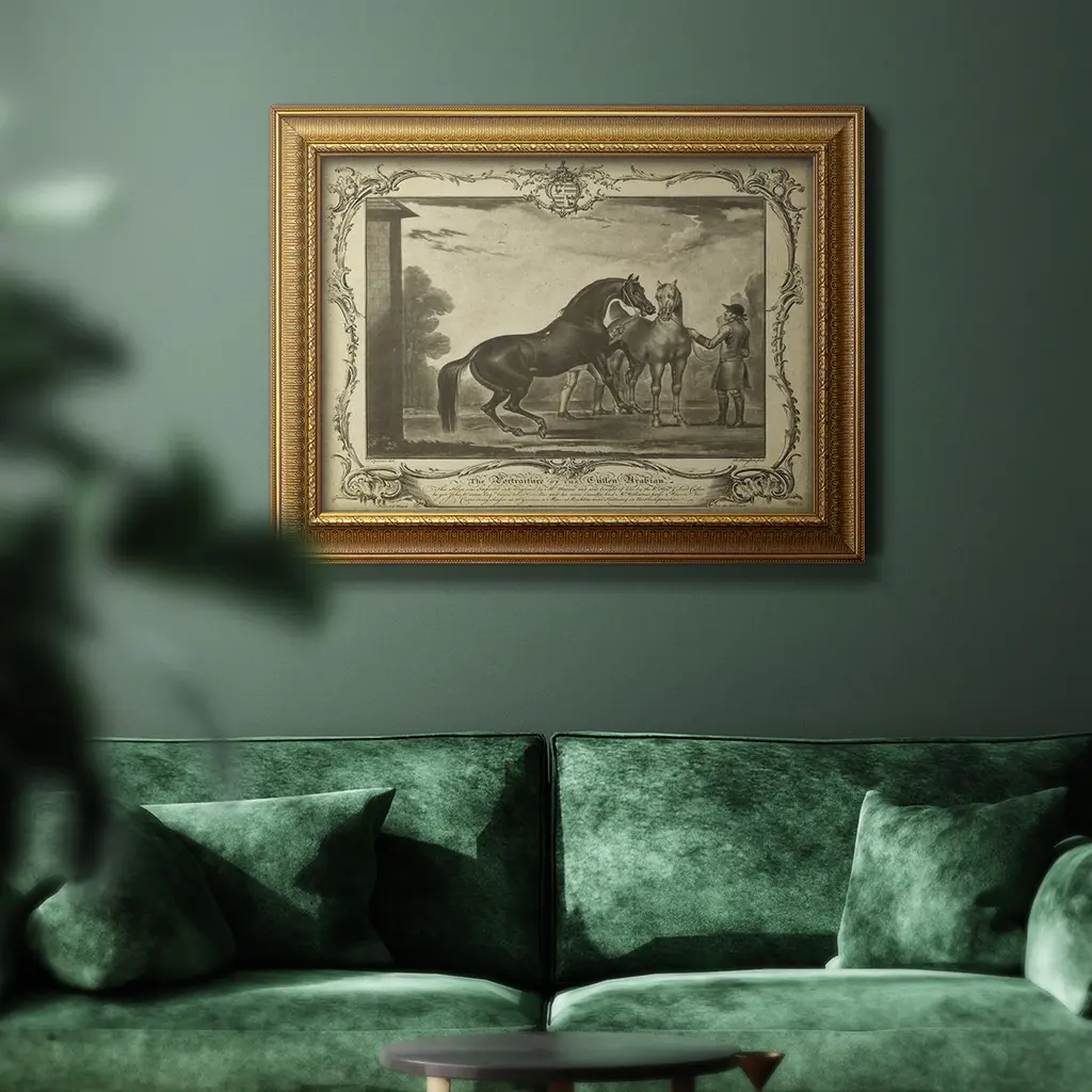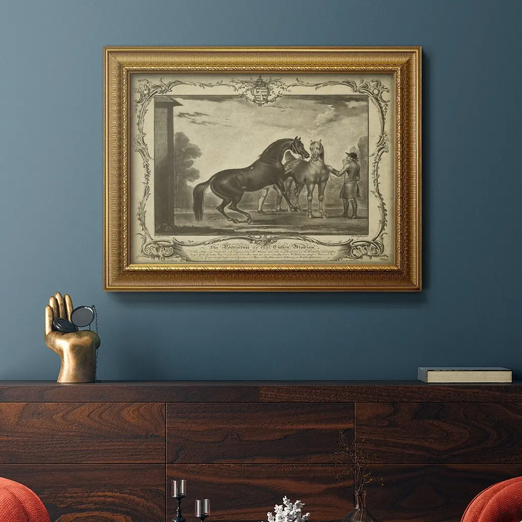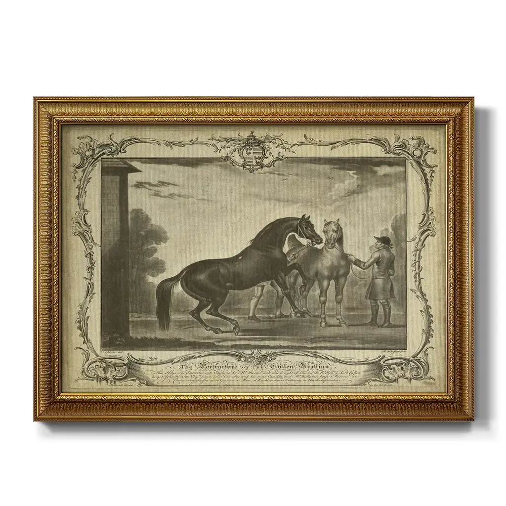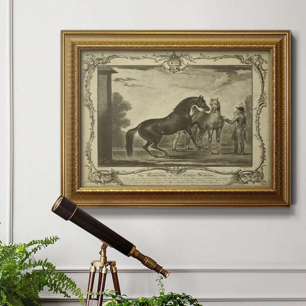 Distinguished Horses III Premium Framed Canvas- Ready to Hang A Premium Framed Canvas created to last. Framed in distressed wood and available in an array of sizes and colors Featuring a beveled a solid wood stretcher bar, each piece comes ready to hand 3 SIZES AVAILABLE 16''X20'' - Overall Size 18'X27'' - Overall Size 24''x36'' - Overall Size Each piece is made to order. Each piece comes with hanging hardware. Made in the USA Ready to Hang Giclee Paper Print Acrylic Glass Beveled Matt Board