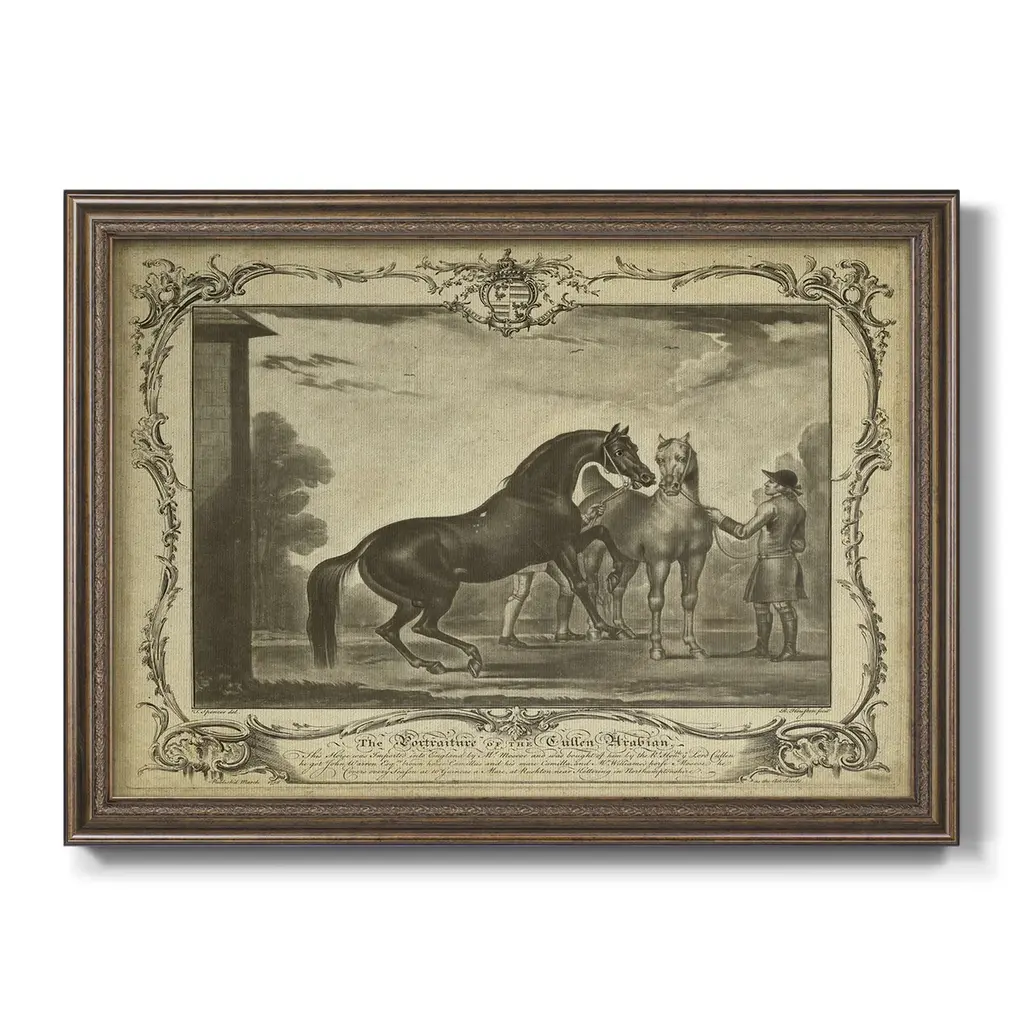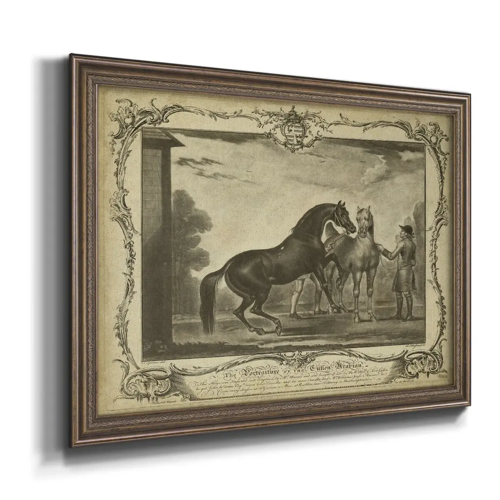 Distinguished Horses III Premium Framed Canvas- Ready to Hang A Premium Framed Canvas created to last. Framed in distressed wood and available in an array of sizes and colors Featuring a beveled a solid wood stretcher bar, each piece comes ready to hand 3 SIZES AVAILABLE 16''X20'' - Overall Size 18'X27'' - Overall Size 24''x36'' - Overall Size Each piece is made to order. Each piece comes with hanging hardware. Made in the USA Ready to Hang Giclee Paper Print Acrylic Glass Beveled Matt Board
