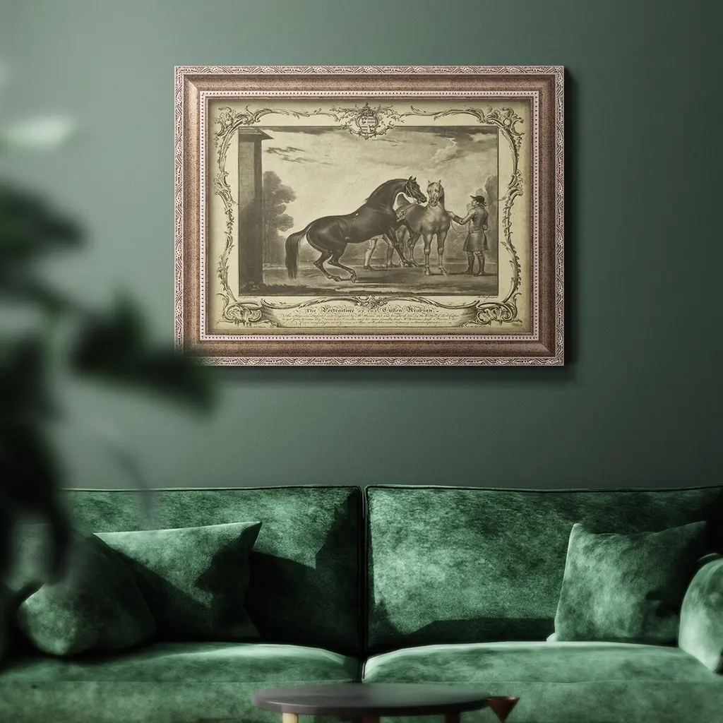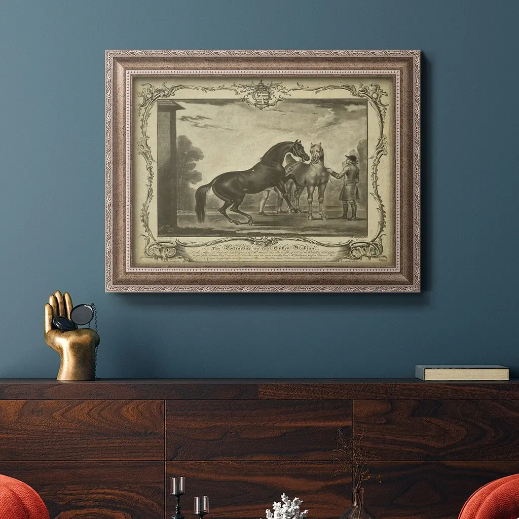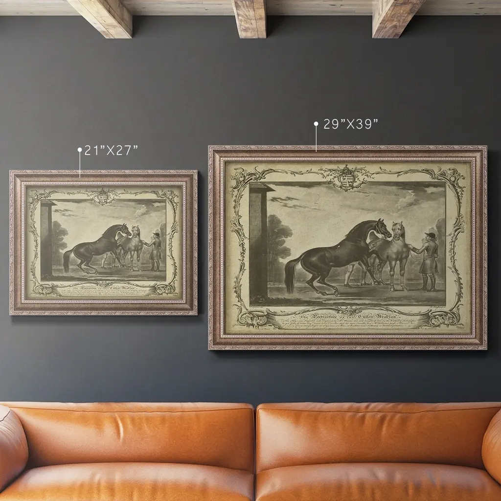 Distinguished Horses III Premium Framed Canvas- Ready to Hang A Premium Framed Canvas created to last. Framed in distressed wood and available in an array of sizes and colors Featuring a beveled a solid wood stretcher bar, each piece comes ready to hand 3 SIZES AVAILABLE 16''X20'' - Overall Size 18'X27'' - Overall Size 24''x36'' - Overall Size Each piece is made to order. Each piece comes with hanging hardware. Made in the USA Ready to Hang Giclee Paper Print Acrylic Glass Beveled Matt Board