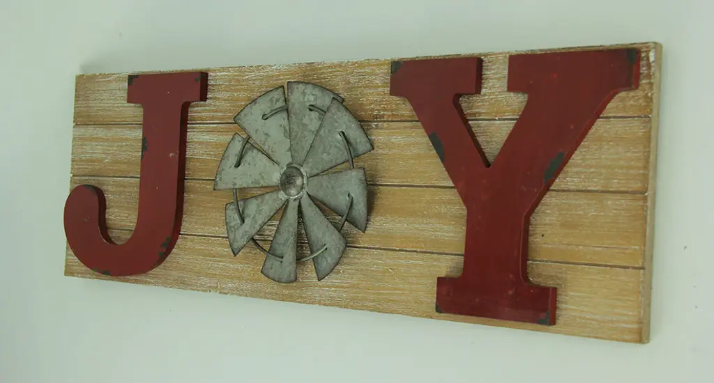 OVERALL SIZE - 23.5 Inches ong, 8 Inches High, 7/8 Inches WideMade of Wood with Two Pre-Installed Hangers On the BackDistressed Painted Finish in Light Wood Brown with Dark Red LetteringWIndmill Decoration Brings a Rustic Touch to Seasonal Decor SettingsPerfect for the Living Room or Family Room Featuring the Words Hope, Joy or NoelLet this rustic wall hanging bring a little farmhouse holiday inspiration to your living room or family room. Made of wood in a distressed finish, the words Joy, Hope, or Noel and a windmill decoration bring a stylish look that can be displayed year round too. This decorative plaque artfully fuses classic industrial styling with a modern look, creating a stylish home decor accent. This 23.5-inch long, 8-inch high, 7/8-inch wide wood wall decor is easy to display with two pre-installed hangers on the back. If you are looking for something a little rustic yet a little modern too, you will enjoy this eye-catching piece on your wall.