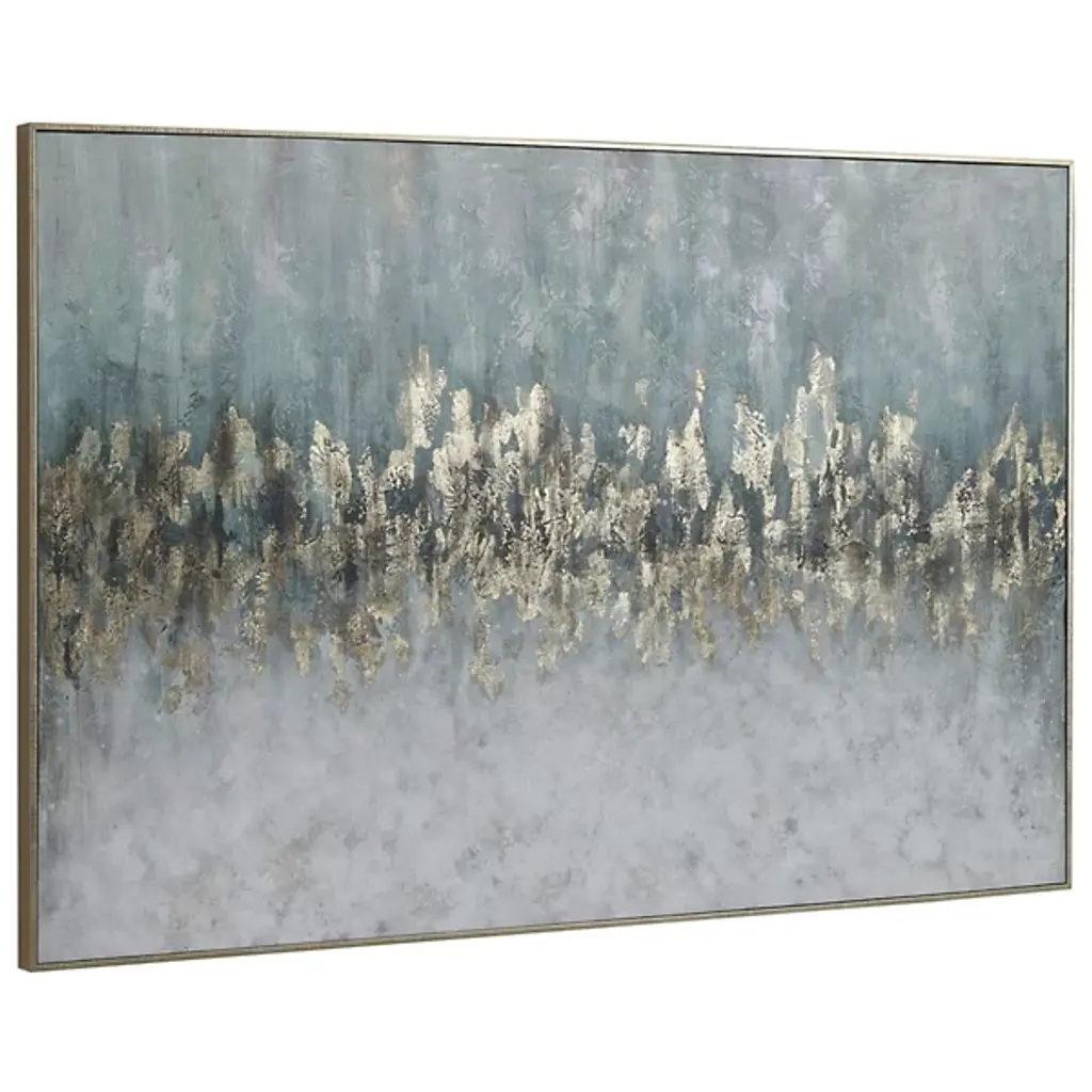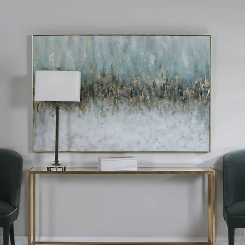 The Divide Hand Painted Wall Art from Uttermost breaks conventional composition rules with its bold segmentation techniques. Brushstrokes flow across the canvas until interrupted by metallic lines that create distinct zones of color and texture. The artist's hand is evident throughout the piece's varying pressure points and paint application methods. Each section maintains its own character while contributing to the overall harmony. The gallery frame provides a polished boundary for the expressive interior. This original artwork brings energy to neutral spaces and serves as a conversation-starting focal point that draws viewers in for closer examination.