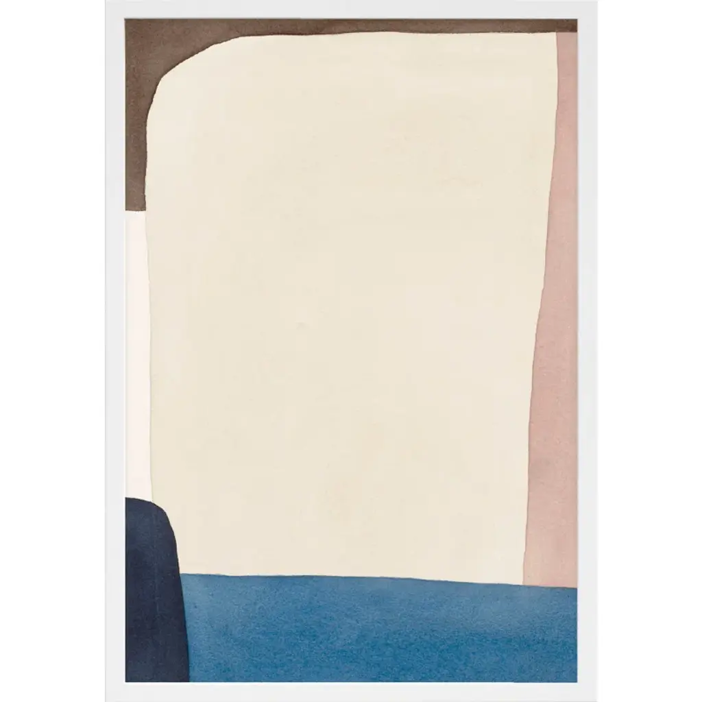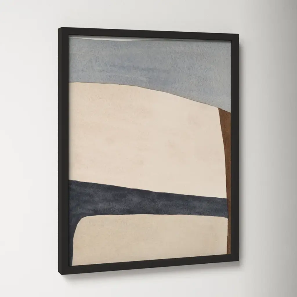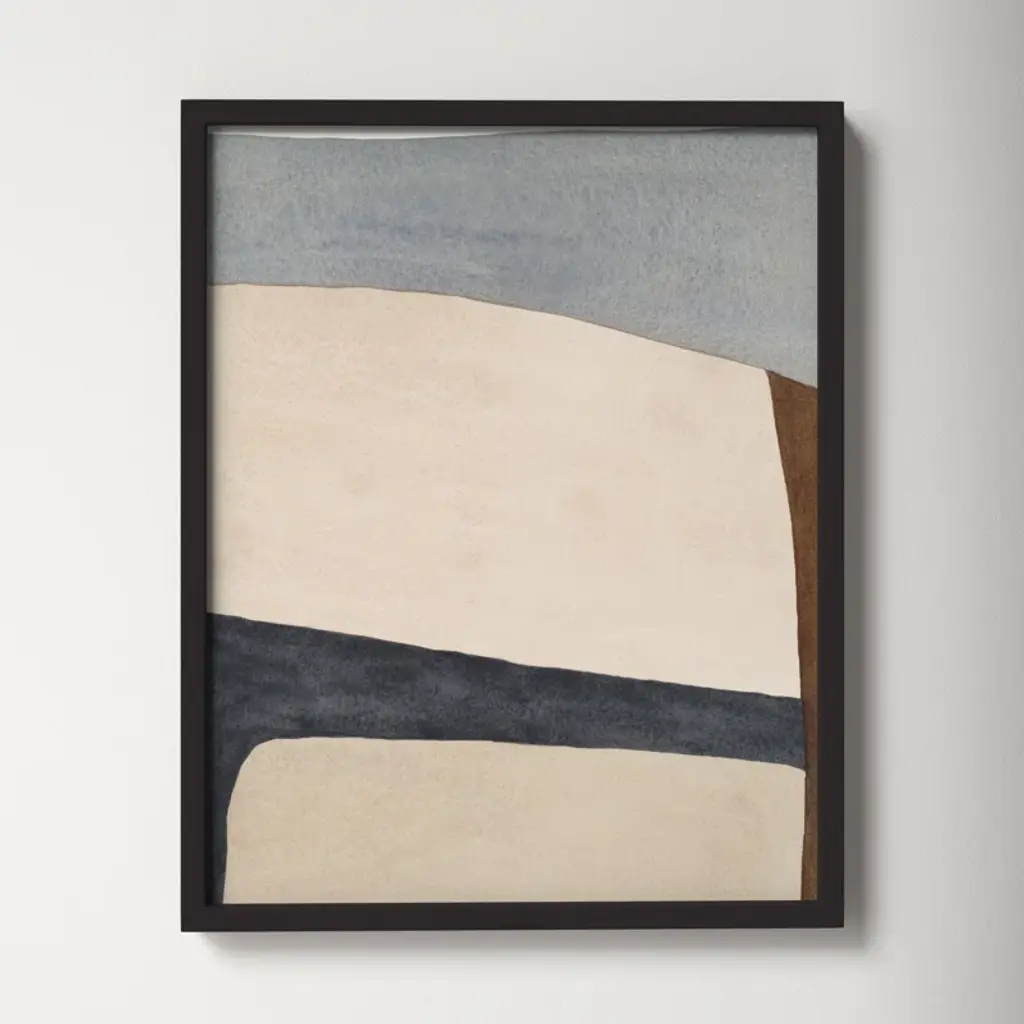 This watercolor painting print leans on abstract art movements like color field painting to create a bold abstract design. Printed in the USA, this piece by artist Julia Balfour features muted palette with tones of beige and brown interrupted by streaks of contrasting blue and gray. It's printed on fine art paper with a plexiglass cover for an accurate reproduction that lasts. Arrives framed and matted with includes wall mounting hardware, so it's ready to hang right out of the box.