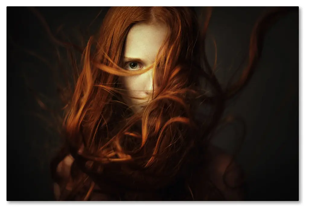 Artist: Dmitry AgeevSubject: PeopleStyle: EclecticProduct Type: Gallery-Wrapped Canvas ArtMade in USAThis ready to hang, gallery-wrapped art piece features a portrait of a woman with red hair in the center of the frame.1x is not your average photo site. All photos on 1x are selected by a team of professional gallery curators, just like in a real photo gallery. Our curators have experience from well-known institutions such as Sotheby's and Tate Modern Art. We believe that everyone has an inner photographer, just waiting to be discovered. Getting published on 1x is a great achievement; many photographers whose works now hang in art galleries were once discovered on 1x. It's no coincidence that art directors, book editors, and magazines all over the world use photos from 1x photographers.Giclee (jee-clay) is an advanced printmaking process for creating high quality fine art reproductions. The attainable excellence that Giclee printmaking affords makes the reproduction virtually indistinguishable from the original piece. The result is wide acceptance of Giclee by galleries, museums, and private collectors. Gallery wrap is a method of stretching an artist's canvas so that the canvas wraps around the sides and is secured a hidden, wooden frame. This method of stretching and preparing a canvas allows for a frameless presentation of the finished painting.