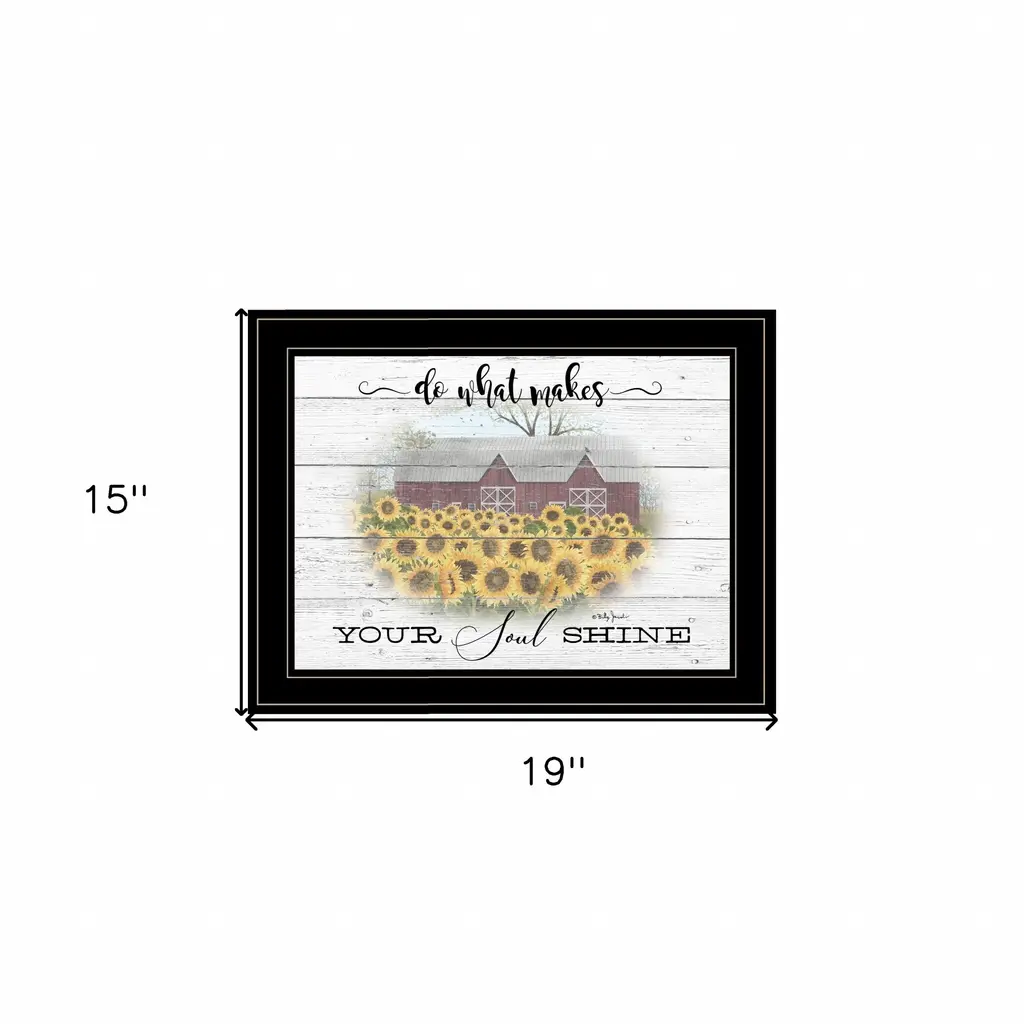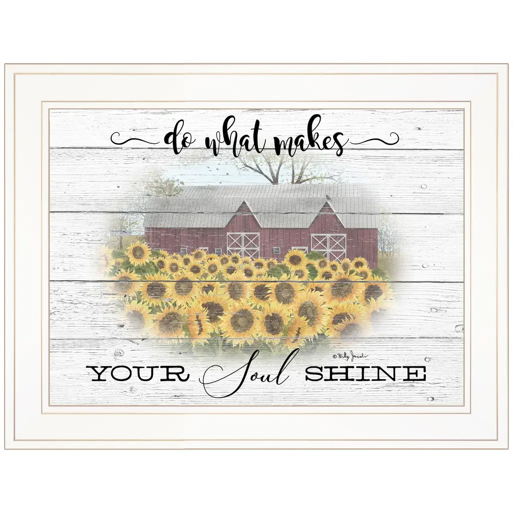 Bring some sizzle to your space with this eye-catching do what makes your soul shine 1 white framed print wall art. This print is a visual artistic expression that allows you to decorate your space in style. Reproduced for you on paper, this hanging decorative accent will be a trendy and fashionable way to dress your walls. Hang on your wall to add some up to date fashion and decoration. Utilize this opportunity to create a focal point in the room with this fabulous wall decor option. 15" H x 19" W x 1" D