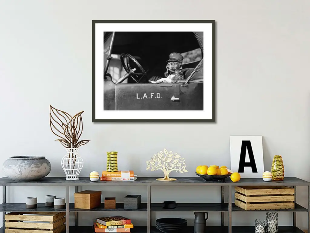 Dog At Fire Truck Wheel Smoking Pipe Print