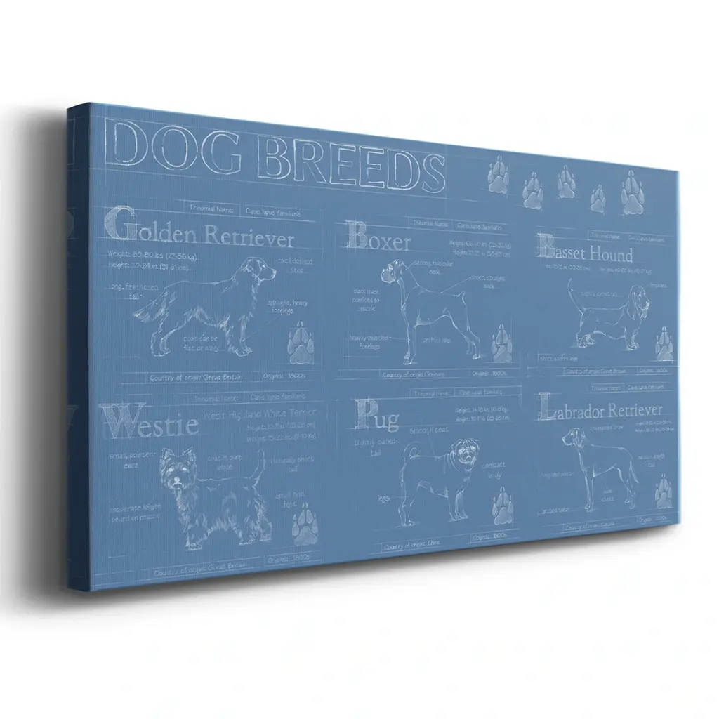 Dog Breeds Infograph Premium Gallery Wrapped Canvas - Ready to Hang A premium hand stretched gallery wrapped canvas print created to last. Featuring a beveled a solid wood stretcher bar, each piece comes ready to hand 5 SIZES AVAILABLE 8''X12'' - Overall Size 16'X20'' - Overall Size 24''x32'' - Overall Size 30''x40'' - Overall Size 36''x48'' - Overall Size Each piece is made to order. Built to Last Each piece comes ready to hang Solid wood stretcher Fade and Water resistant Made domestically