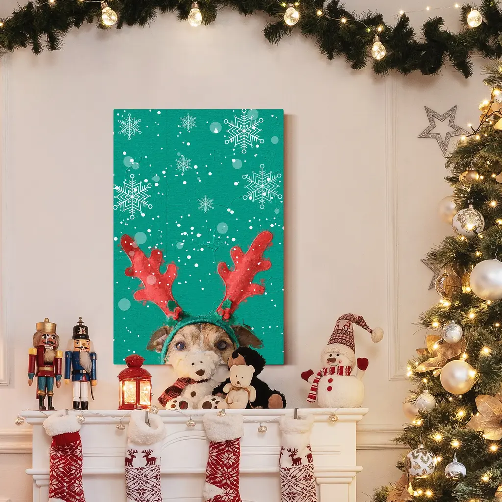 Dog Christmas Green-Premium Gallery Wrapped Canvas - Ready to Hang A premium hand stretched gallery wrapped canvas print created to last. Featuring a beveled a solid wood stretcher bar, each piece comes ready to hand 5 SIZES AVAILABLE 8''X12'' - Overall Size 16''x20'' - Overall Size 18''x27'' - Overall Size 24''x36'' - Overall Size 32''x48'' - Overall Size Each piece is made to order. Built to Last Each piece comes ready to hang Solid wood stretcher Fade and Water resistant Made domestically