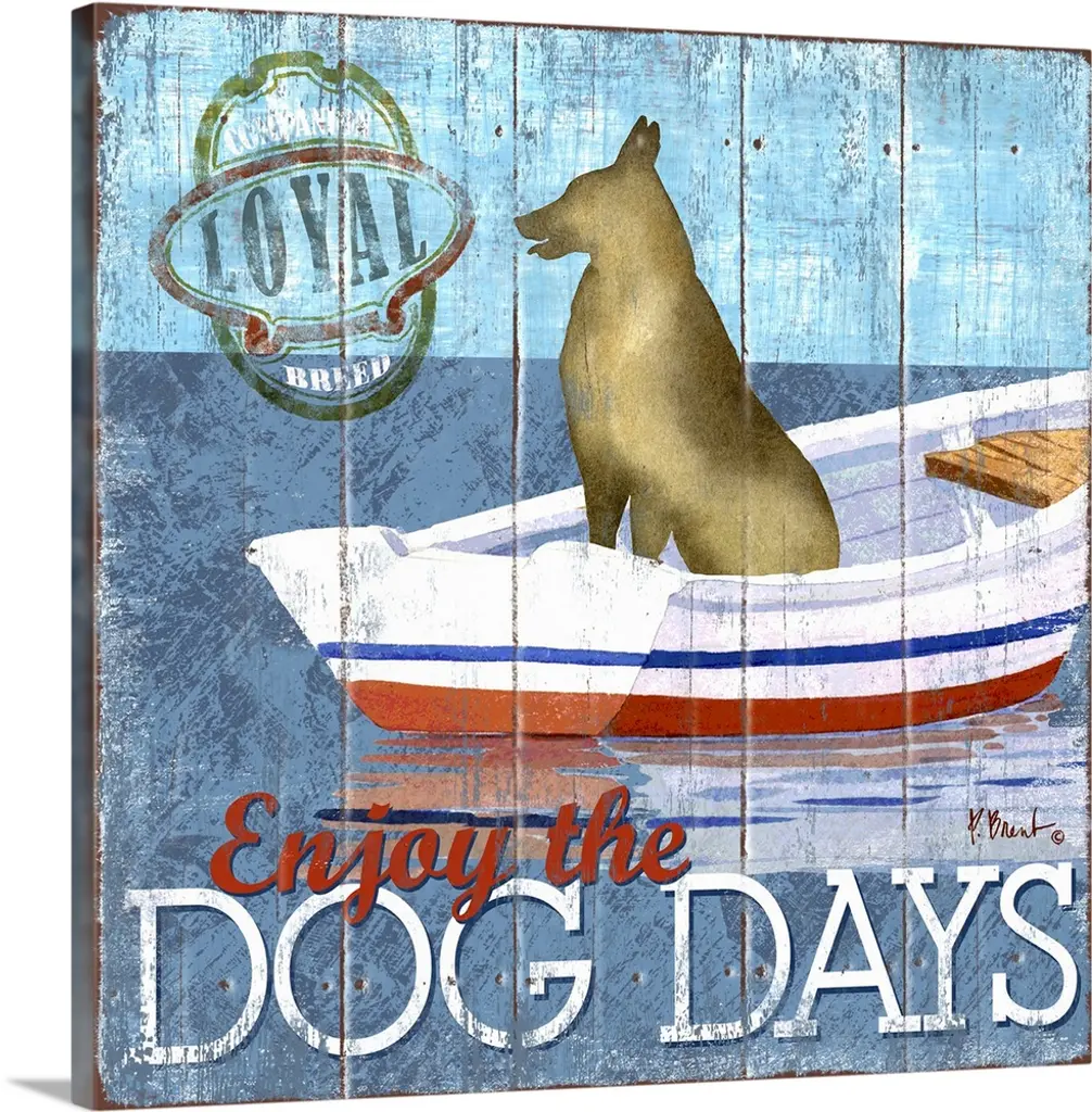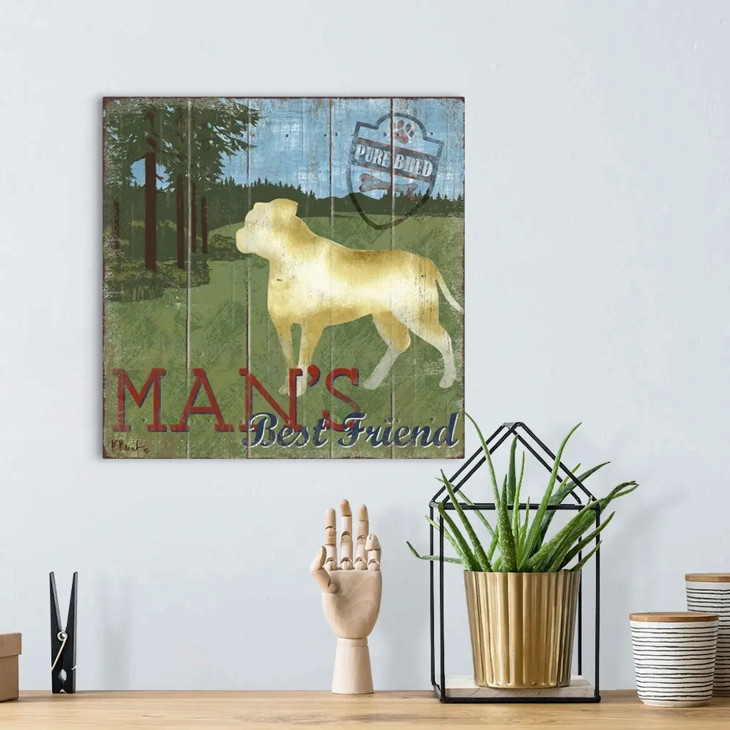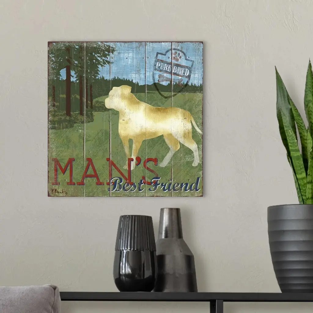 Contemporary decorative artwork of a pit bull dog on a boat with the words "Man's Best Friend."