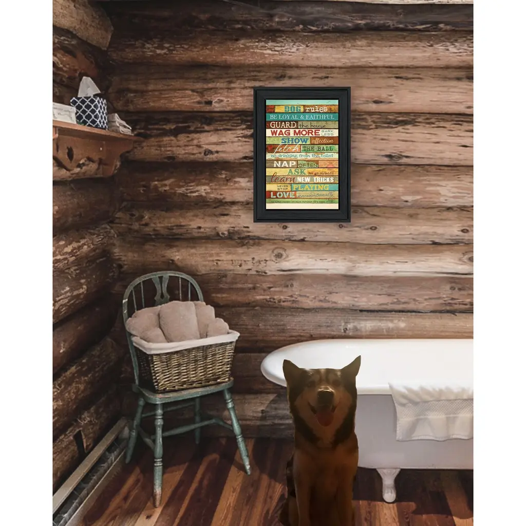 Add an air of fashion to your room and rejuvenate the space with this dog rules 3 black framed print wall art. This print is a visual artistic expression that allows you to decorate your space in style. Reproduced for you on paper, this hanging decorative accent will be a trendy and fashionable way to dress your walls. Hang on your wall to add some up to date fashion and decoration. Instantly liven up your space with this art that brings color and dimension to your walls. 11" H x 15" W x 1" D