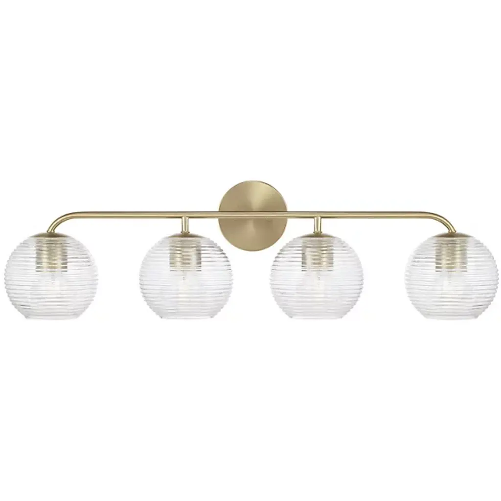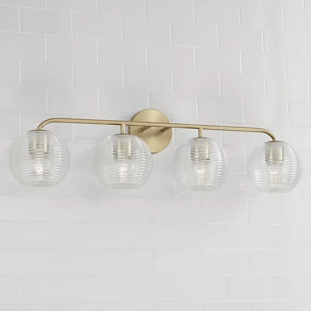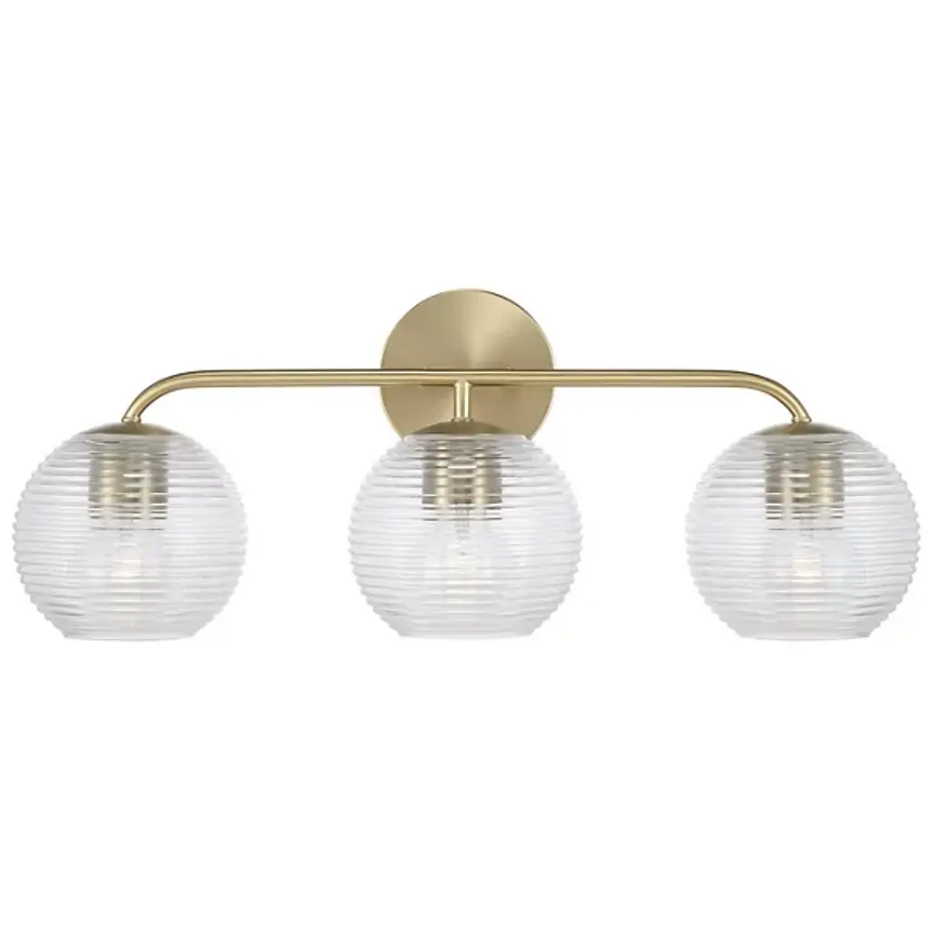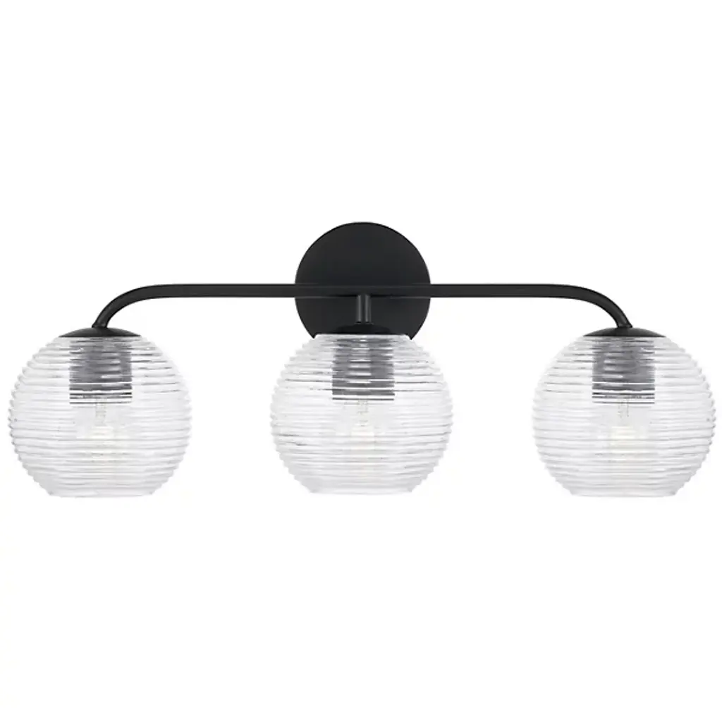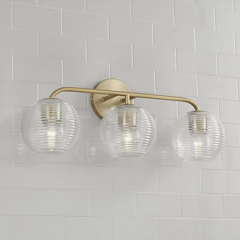 The Dolan Vanity Light by Capital Lighting gives you a minimalist style with maximum impact. Pairing designer details with ribbed glass globes and fine metal framework, the Dolan Vanity Light creates an elegant, art deco aesthetic. This light fixture is made available in multiple light quantities so that you can choose the piece that is right for you.