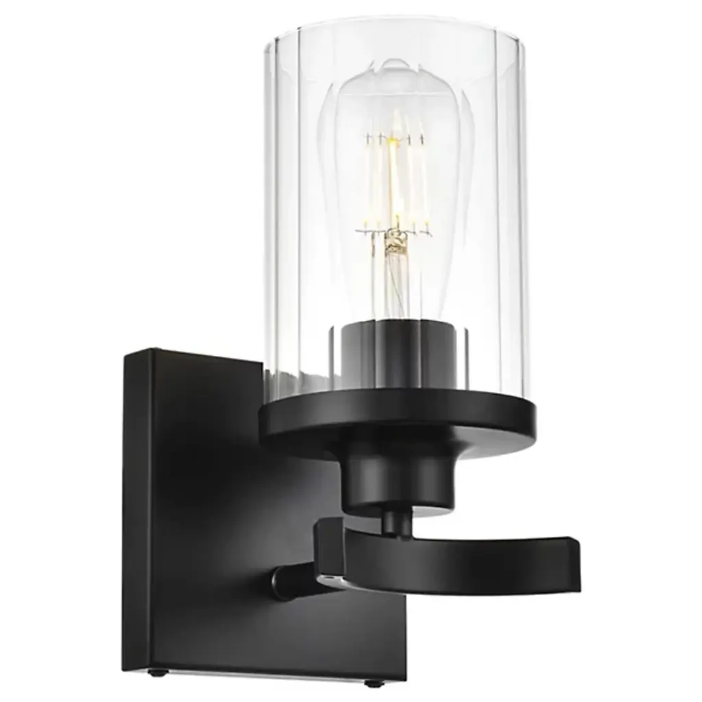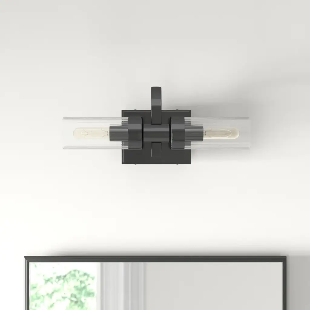 This vanity light combines the best aspects of old-world charm with sleek, modern minimalism. The frame is made from metal and is mounted on a square backplate. Two striated blown glass shades add an artisanal touch that works in contrast to the crisp feel of the metal's iron graphite finish. Best of all, this hardwired vanity light is compatible with dimmer switches and safe to use in damp locations, so it's great for adding a warm glow to covered porches or setting the mood during steamy showers. It accommodates two 60W bulbs (sold separately).