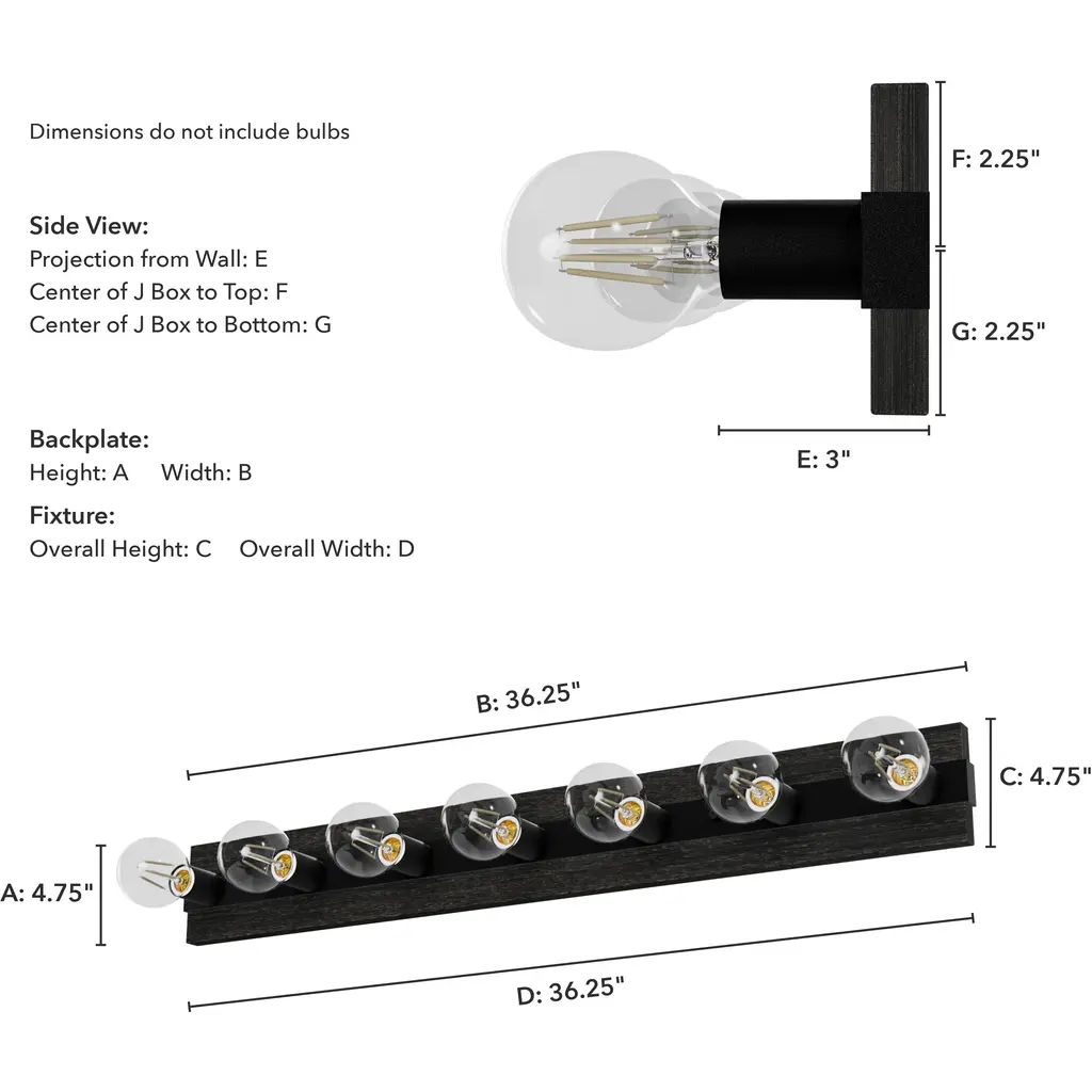 Donelson 7 Light 36 Inch Natural Black Iron And Dark Ash Vanity Light Wall Light, Extra Large