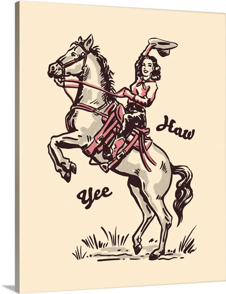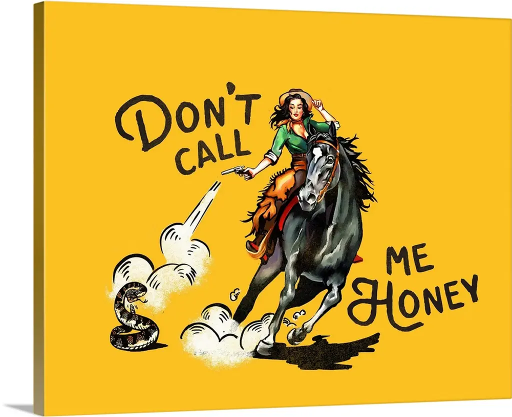 Don't Call Me Honey Retro Cowgirl On Horseback V.1 Art Print