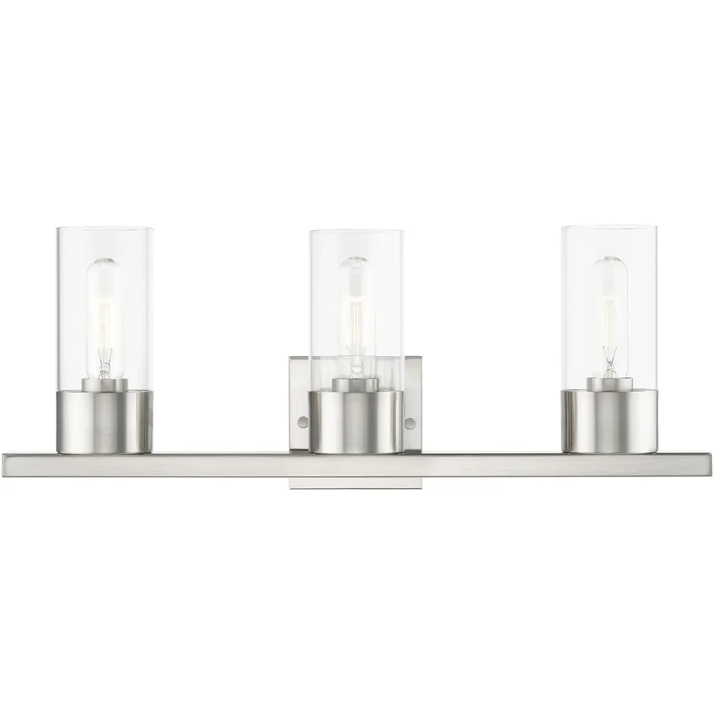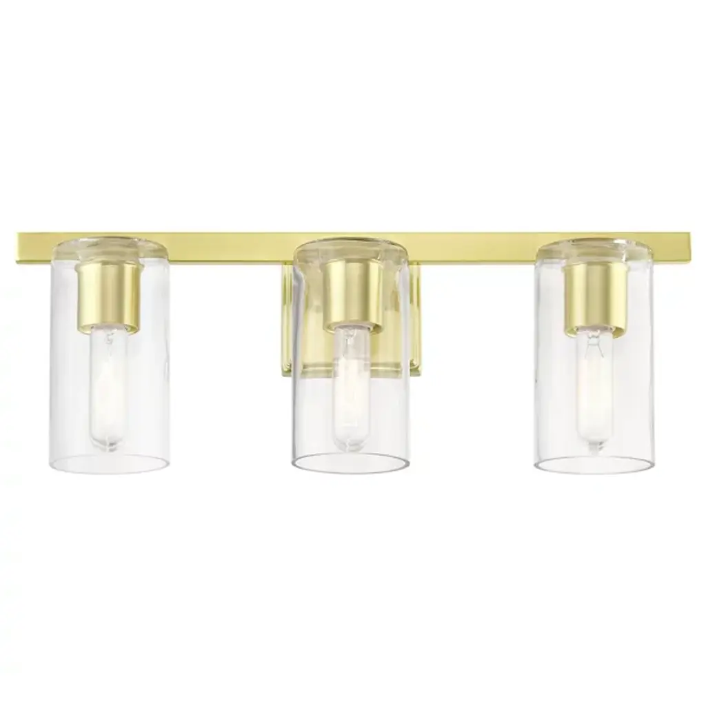 The Dora Vanity Light is a luxe and contemporary light furnishing presented by Alder & Ore. A triad of illumination pours from the clean-lined cylindrical glass shades with a decadent metallic finish along the arms and backplate, while the flattering light is perfect for your everyday getting-ready experience.