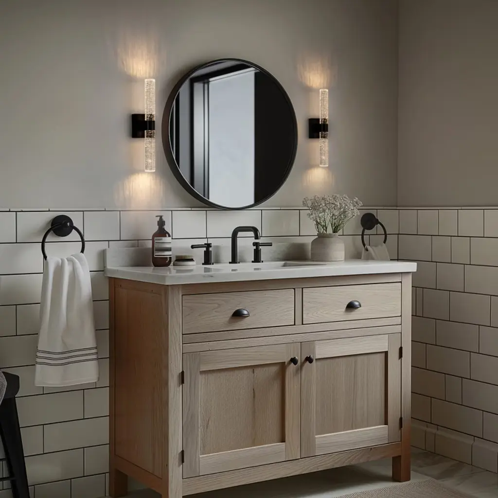 Illuminate your living room with the sophisticated 18 in. 2-Light Modern/Contemporary Glass Bubble LED Vanity Light Bar. Featuring a sleek design with stunning glass bubble accents, this vanity light bar offers a stylish and functional lighting solution. The integrated 3CCT function allows you to choose from 3 different color temperatures, providing the perfect ambiance for any occasion. Upgrade your interior decor with this elegant and versatile light fixture, designed to enhance the beauty and functionality of your space.