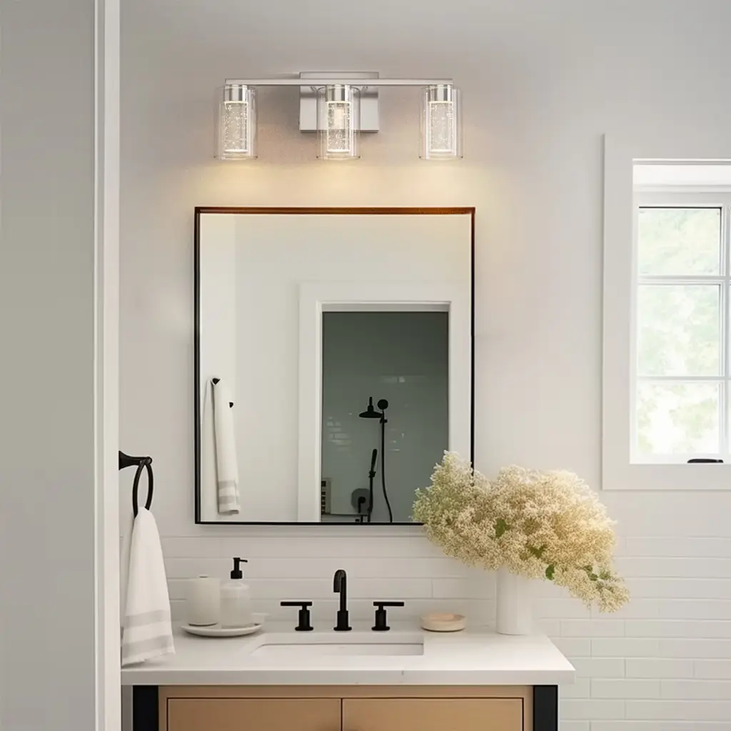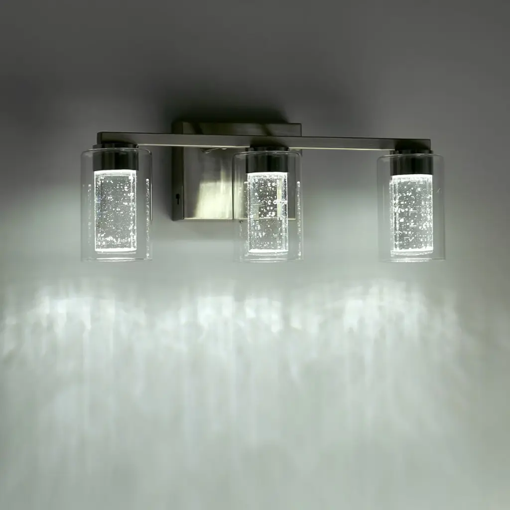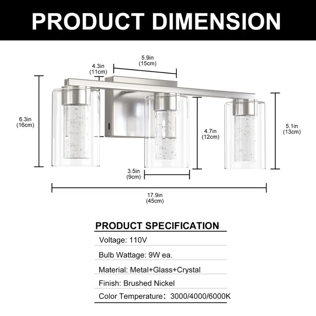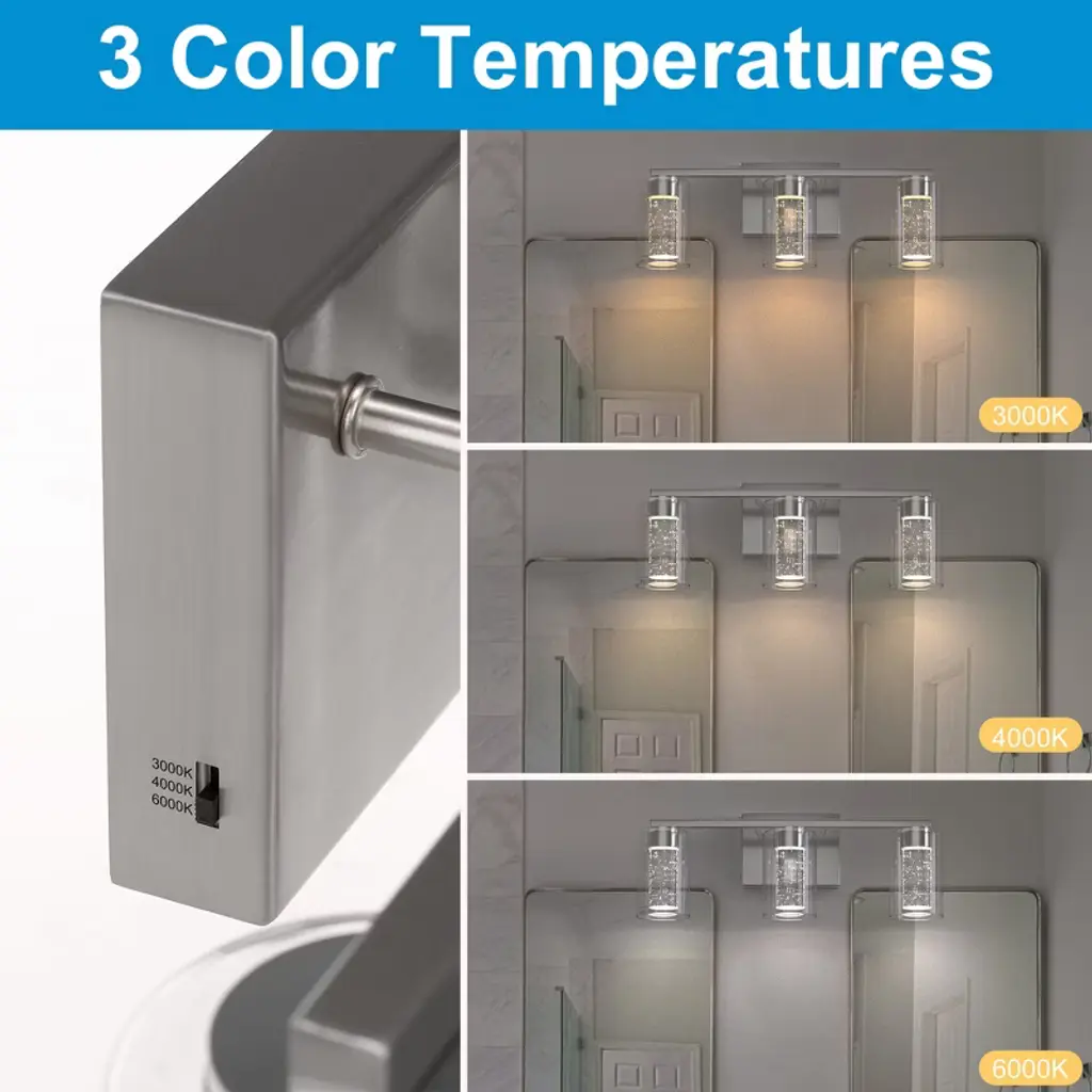 Doresshop 18 In. 3-light Bathroom Light Fixture, Chrome Bathroom Vanity Light 3 Color Dimmable Vanity Light With Crystal Bubble Shade