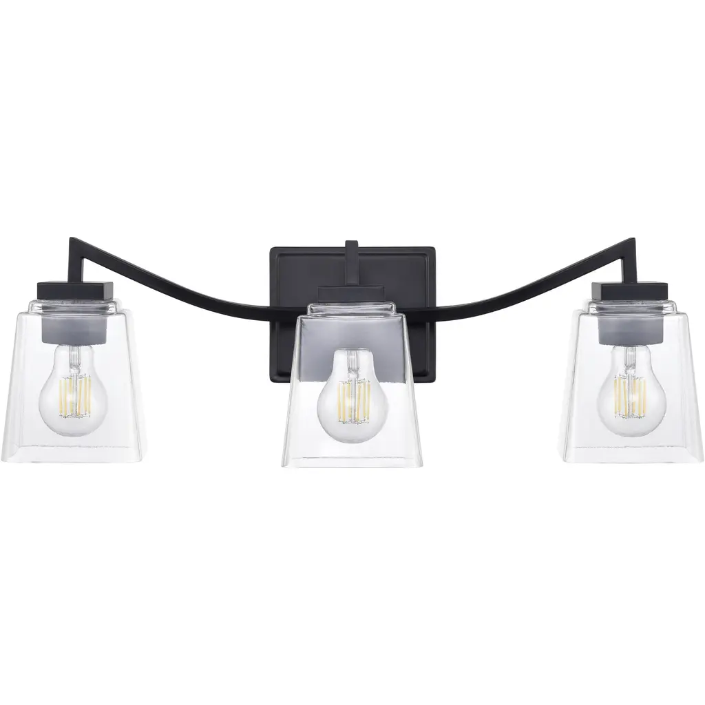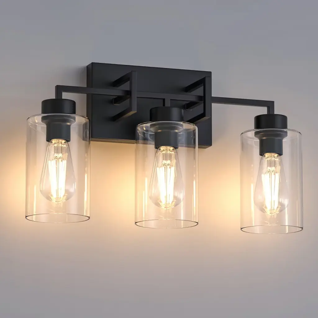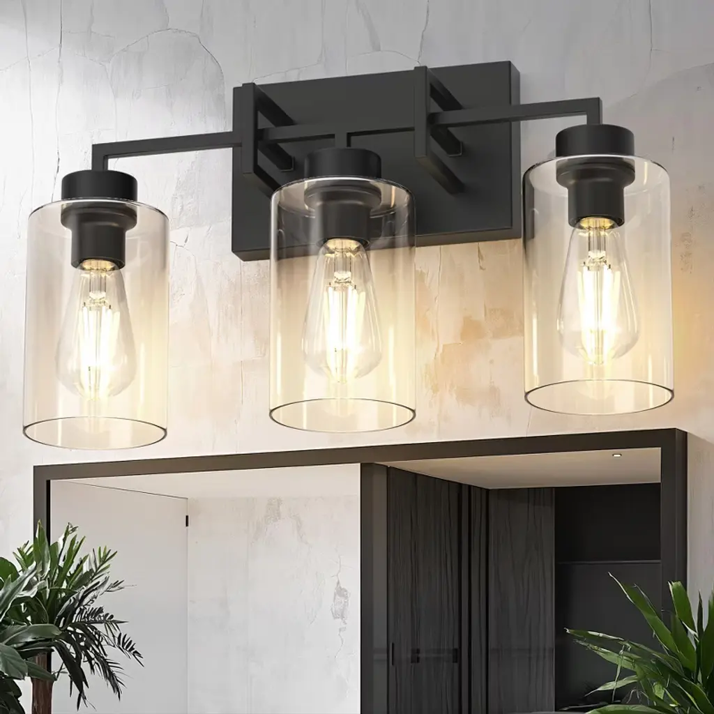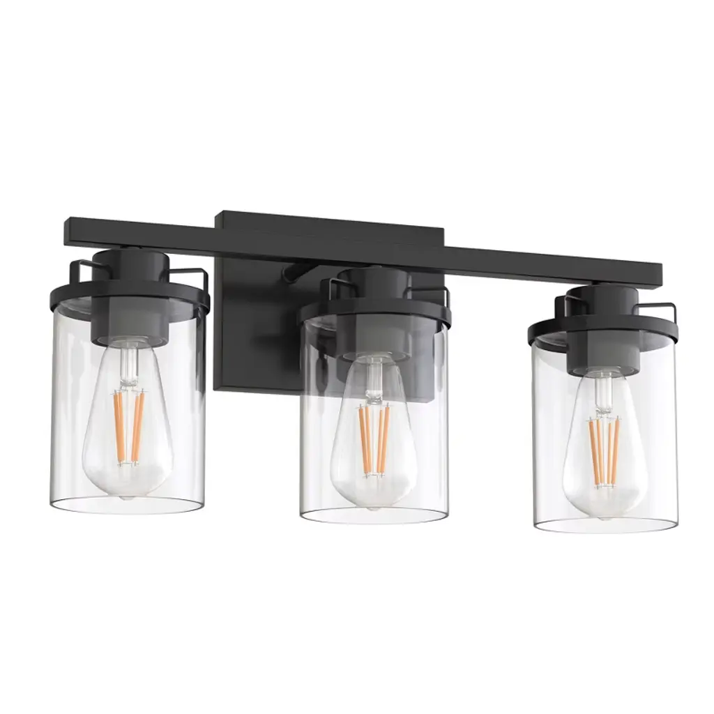 Bring vintage charm to your bathroom with this timeless farmhouse vanity light.Three clear glass shades and a bold black frame offer perfect balance between rustic and refined.Brighten your mornings and elevate your mirror space with effortless style.