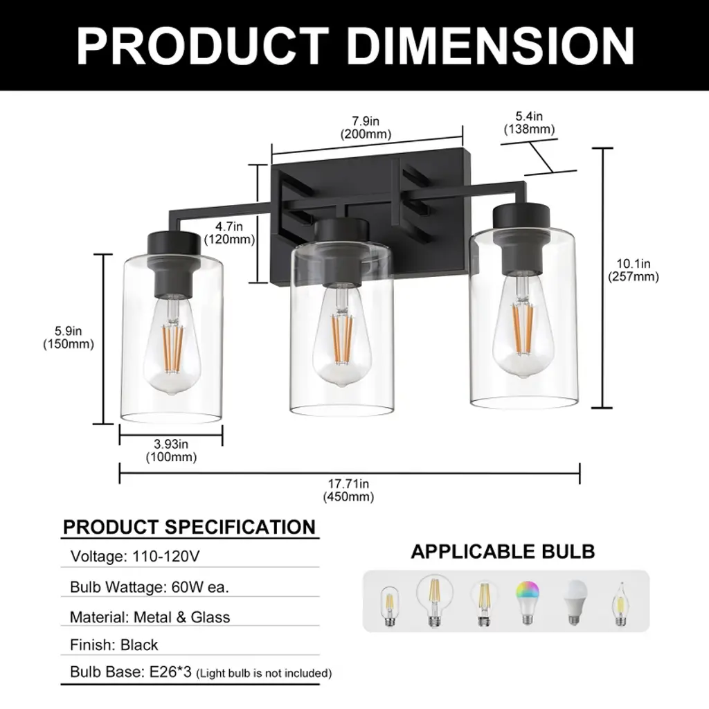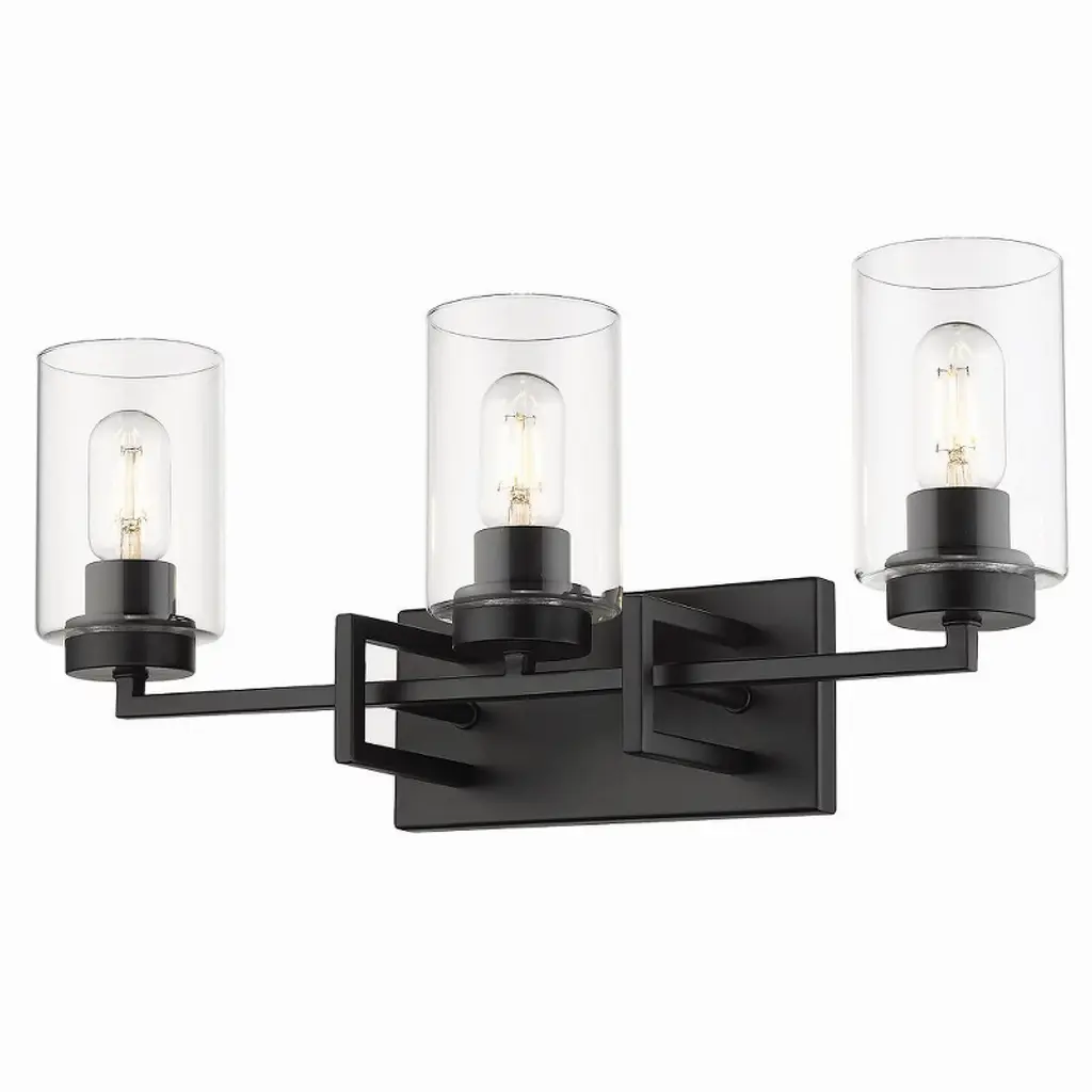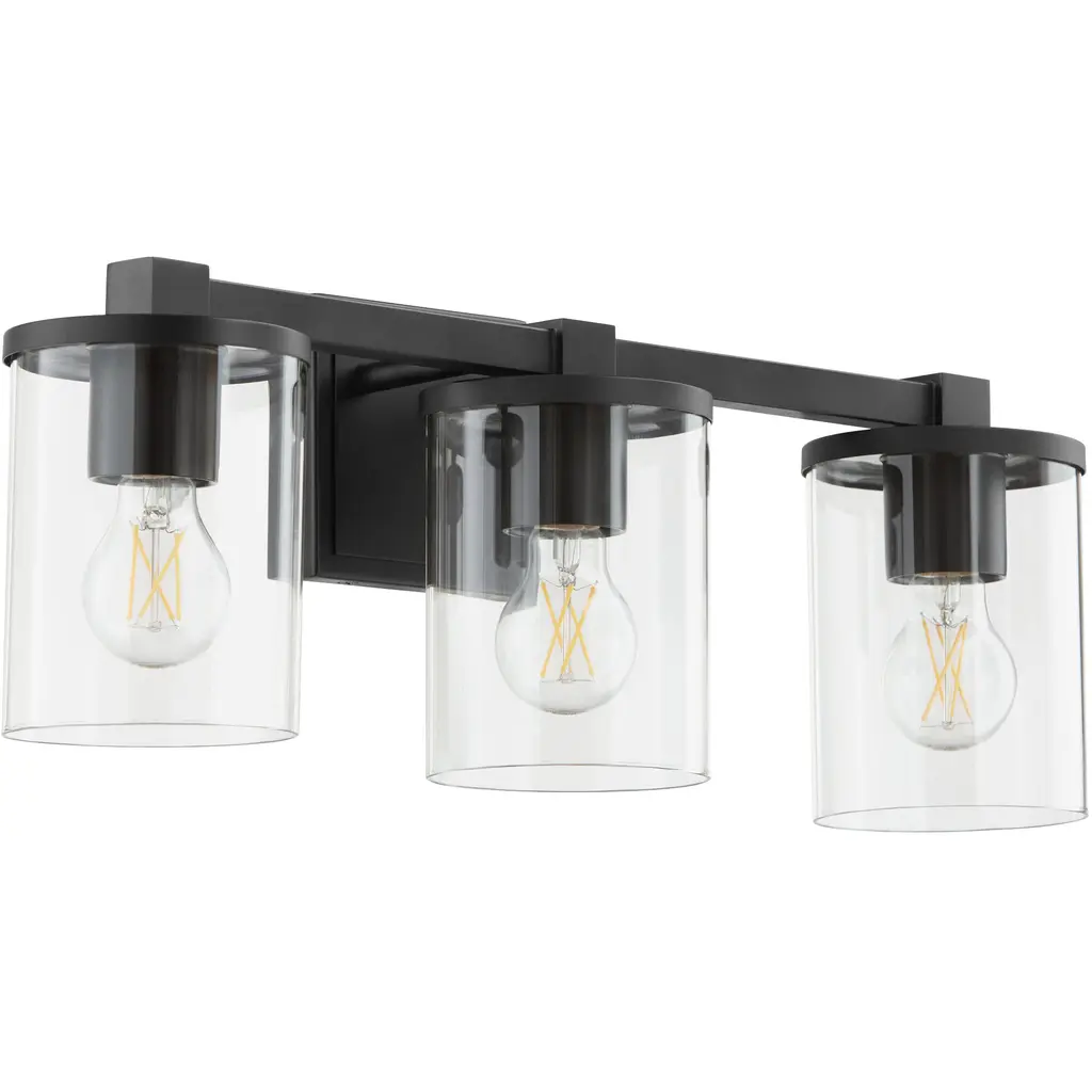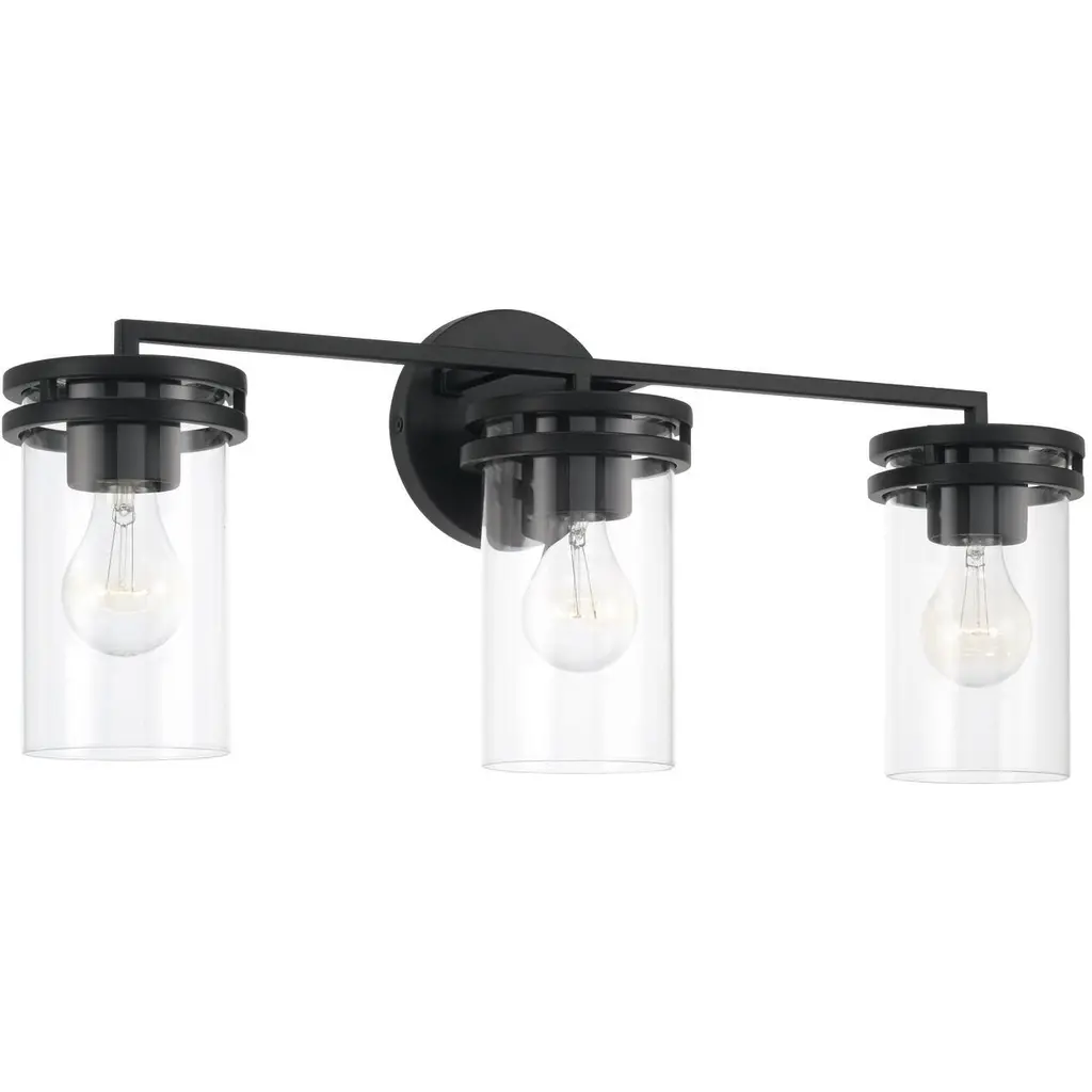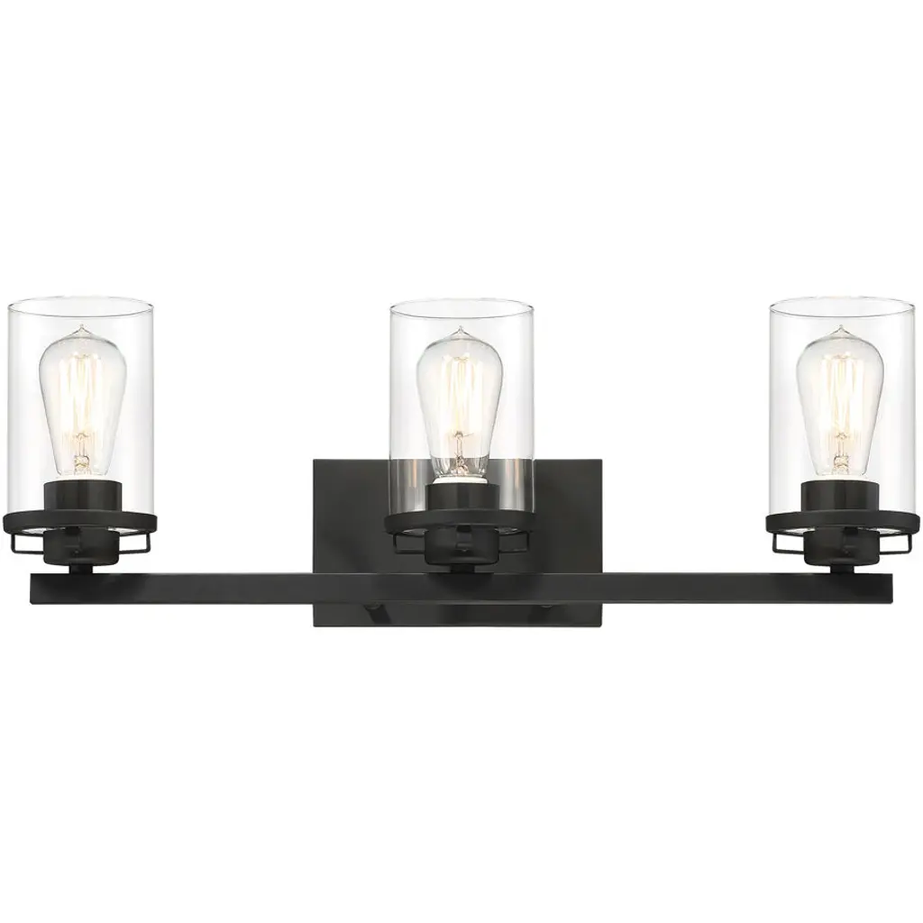 Bring vintage charm to your bathroom with this timeless farmhouse vanity light.Three clear glass shades and a bold black frame offer perfect balance between rustic and refined.Brighten your mornings and elevate your mirror space with effortless style.