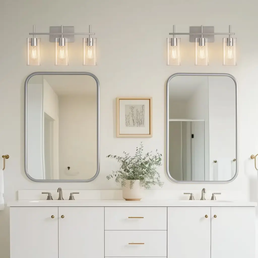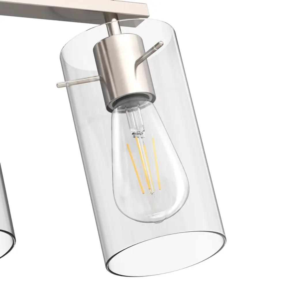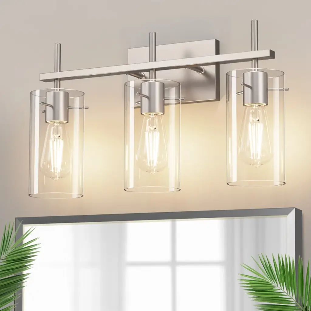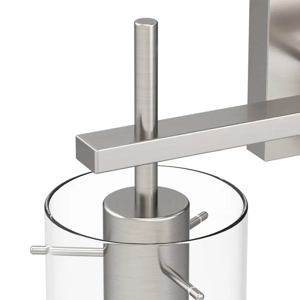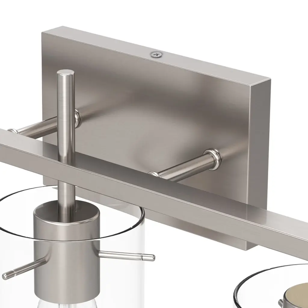 Transform your bathroom with this elegant 3-light vanity fixture. Featuring a modern Brushed Nickel metal frame and clear glass shades, this fixture blends function and style for your vanity area. Its clean lines and minimalist design make it an ideal choice for any bathroom, providing bright, efficient lighting while complementing a wide range of decor styles.