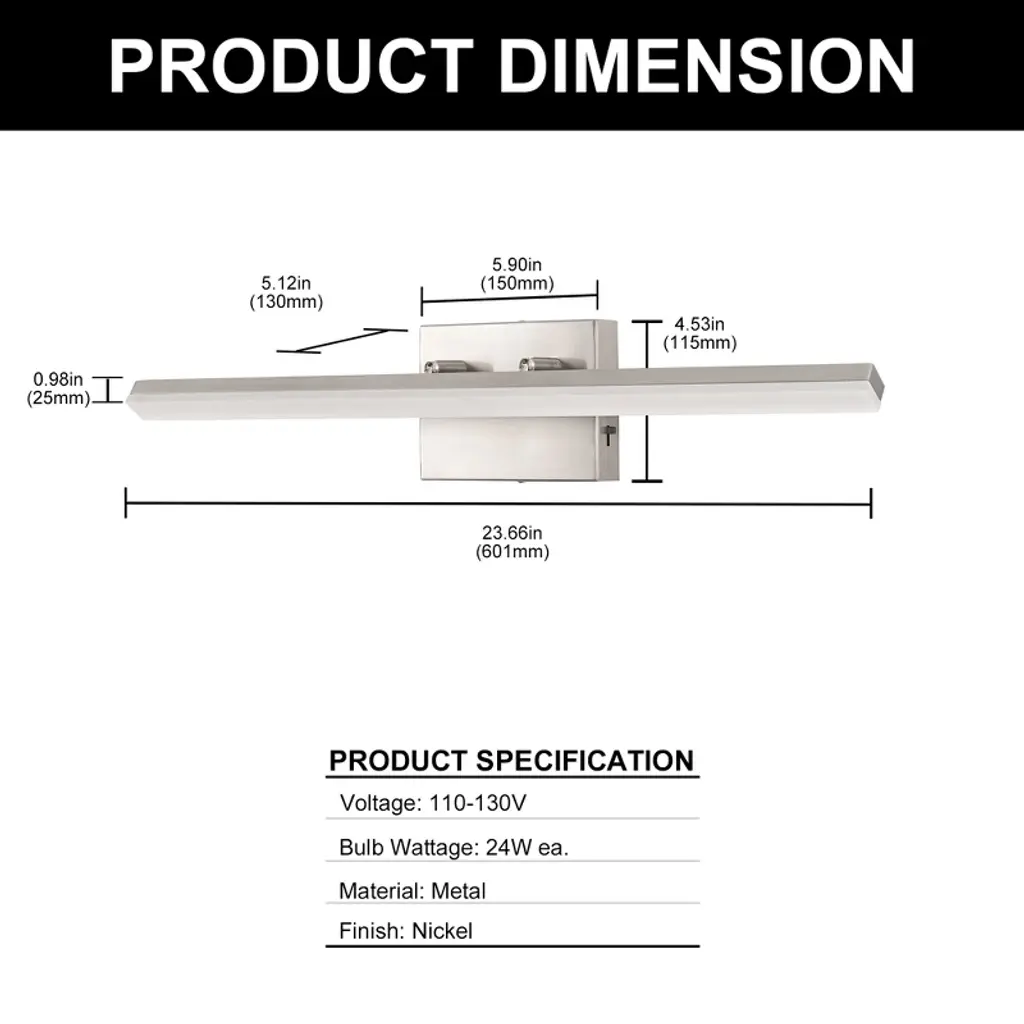 Transform your bathroom with our 24-Watt Vanity Light, featuring a sleek and modern design. This dimmable LED wall sconce offers adjustable light settings to match your mood, creating a perfect atmosphere for any time of day. Its durable construction and energy-saving technology make it a stylish and functional addition to any home.