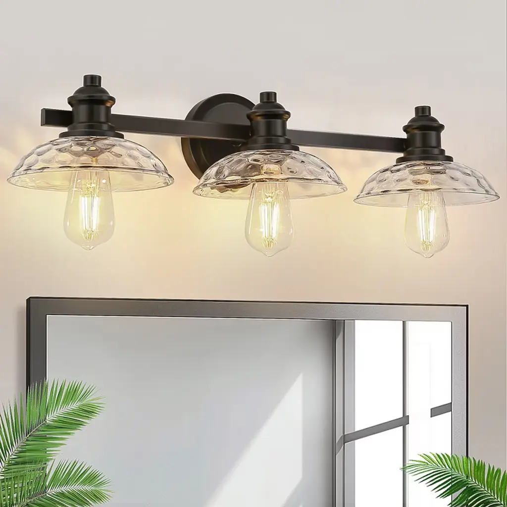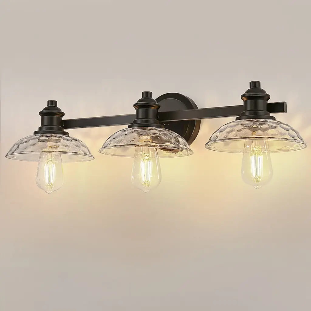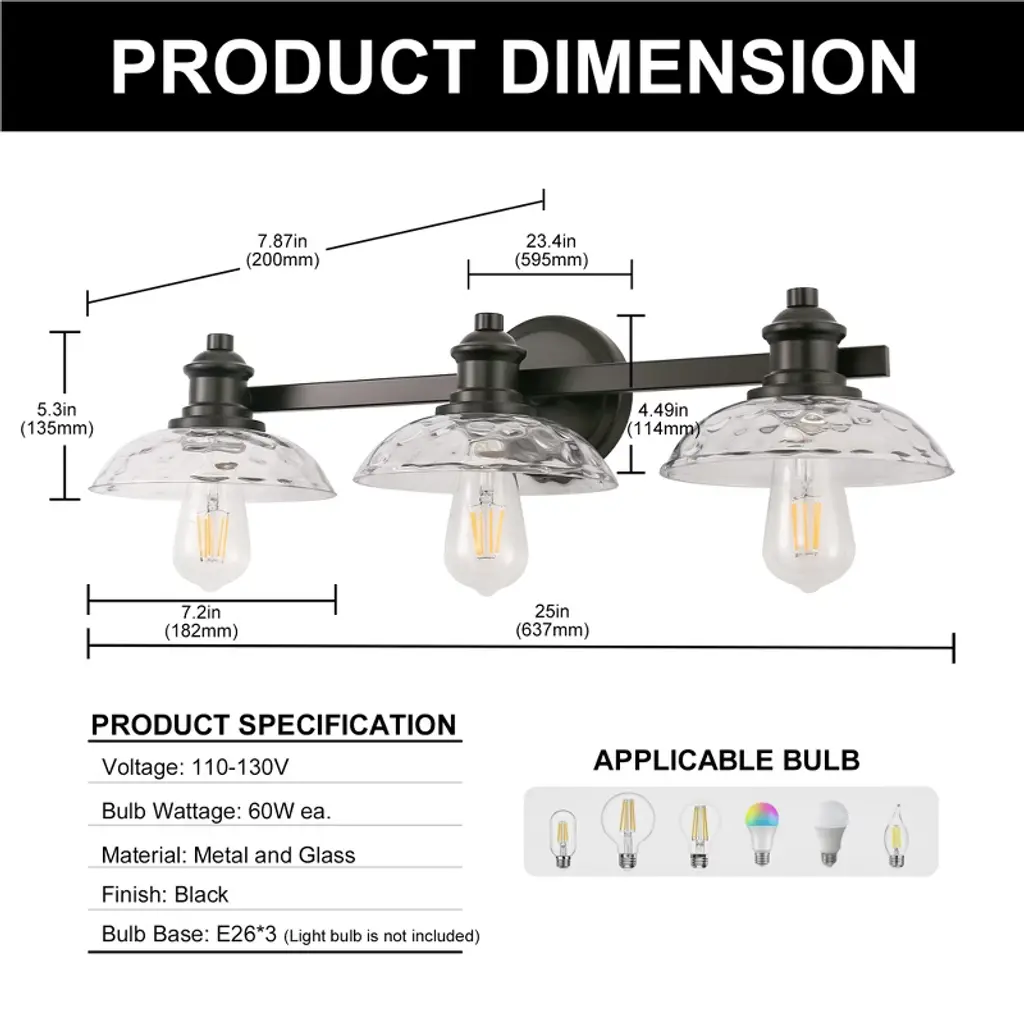 Doresshop 25 In. 3-light Black Vanity Light With Clear Cylinder Glass Shades Wall Sconce For Bathroom Vanity