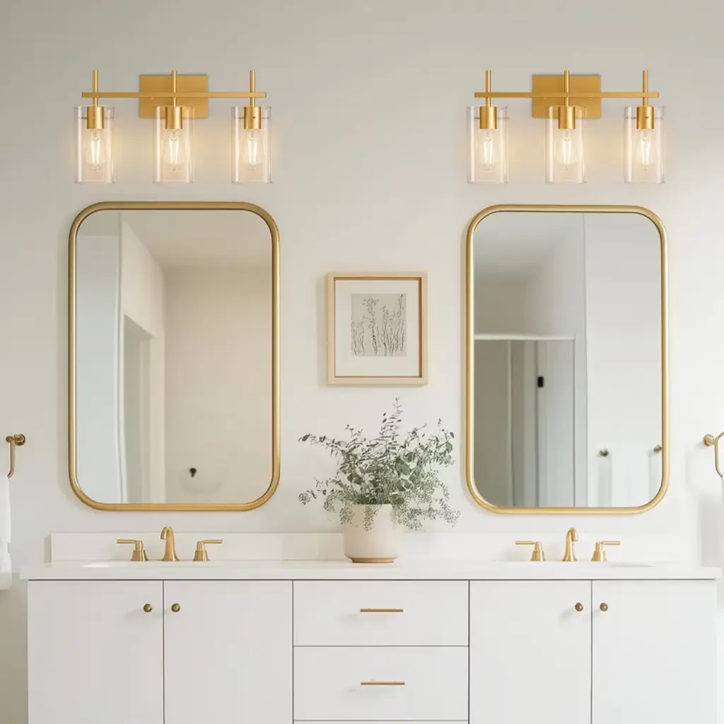Doresshop 3-head Gold Vanity Light With Pierced Glass Shades, Through-head Design, E26 Sockets