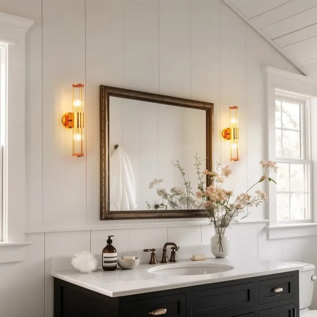 Doresshop 3 In. 2-light Gold Vanity Light Fixture With Elegant Crystal Accents Bathroom Wall Sconce For Any Space