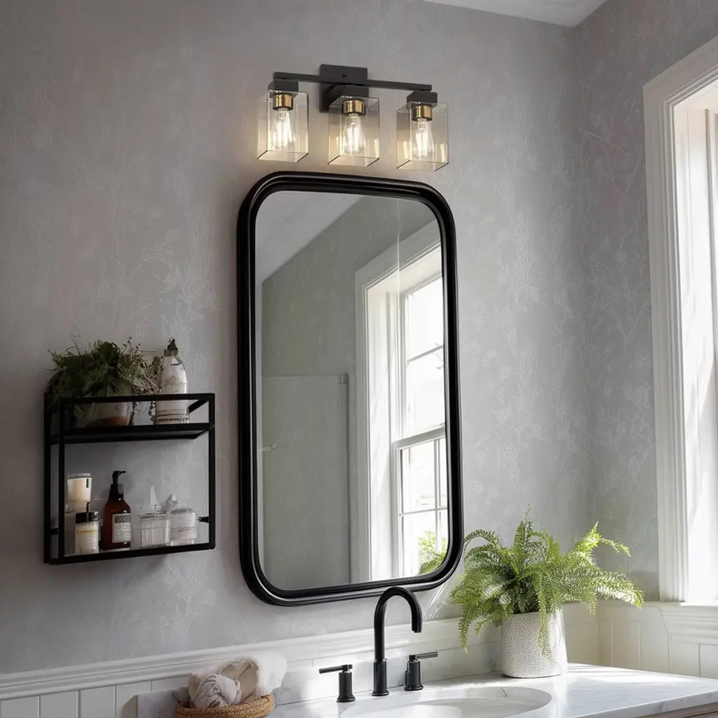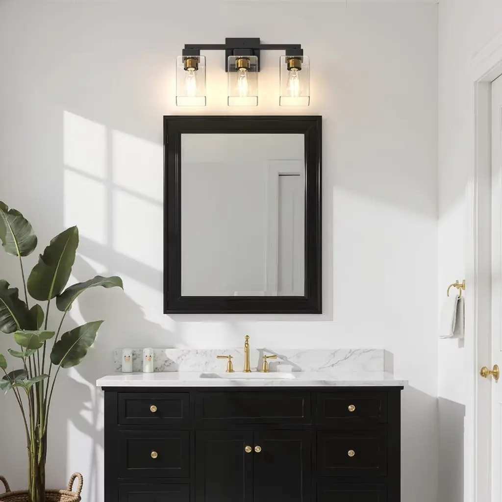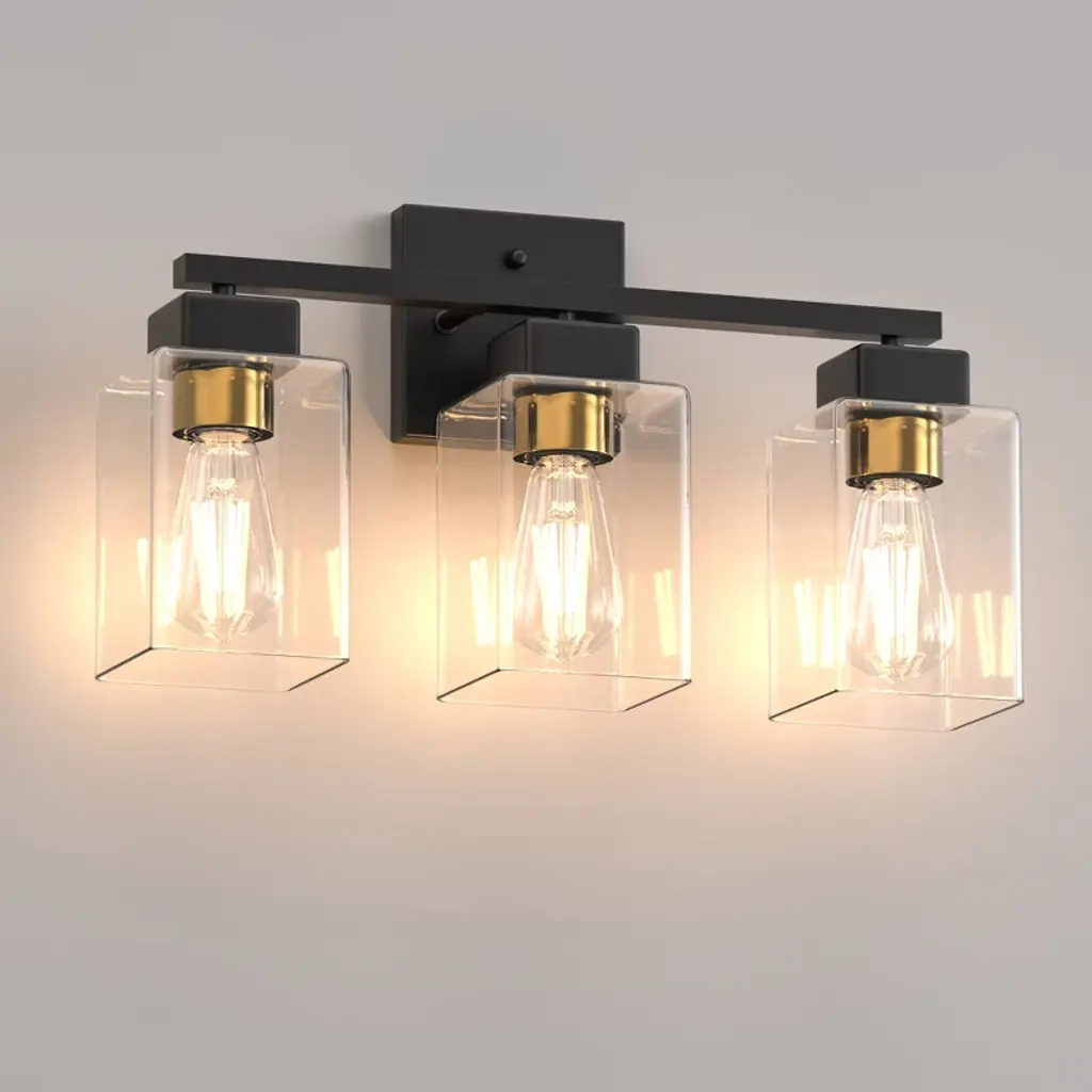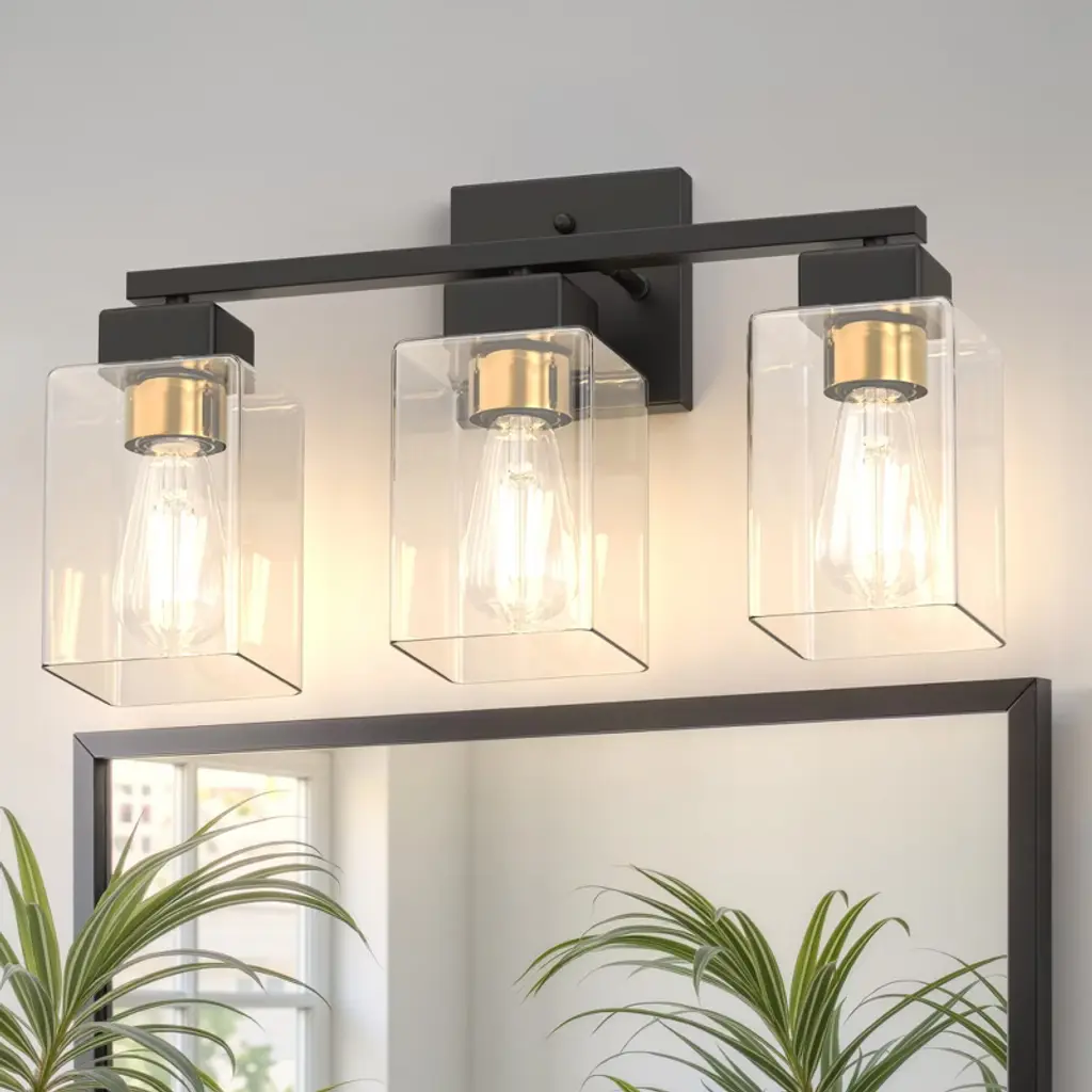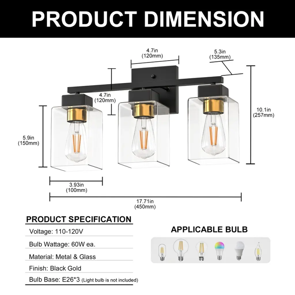 Elevate your bathroom d¨¦cor with this elegant 3-light vanity fixture featuring a stylish black and gold finish. The square glass shades provide a sleek, contemporary look that complements a variety of interior styles. Designed with E26 sockets and a non-integrated bulb configuration (bulbs not included), this fixture allows easy bulb replacement and lighting customization. Ideal for bathrooms, powder rooms, or dressing areas, it delivers balanced illumination with a touch of modern sophistication.