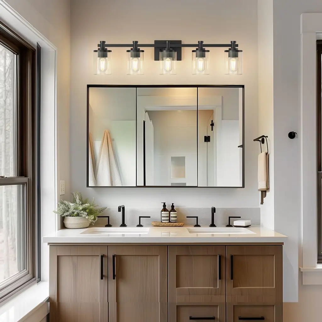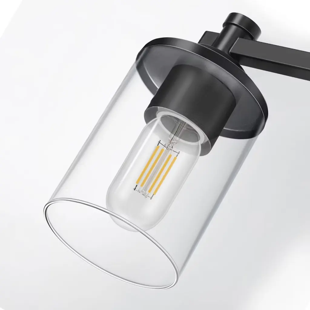 Elevate the ambiance of your bathroom or bedroom with this elegant vanity fixture, featuring a timeless black design. The combination of sleek metal and clear glass shades creates a refined, modern look that complements both traditional and contemporary decor. This fixture is perfect for bathroom vanities, dressing tables, and other spaces where stylish, high-quality lighting is desired.