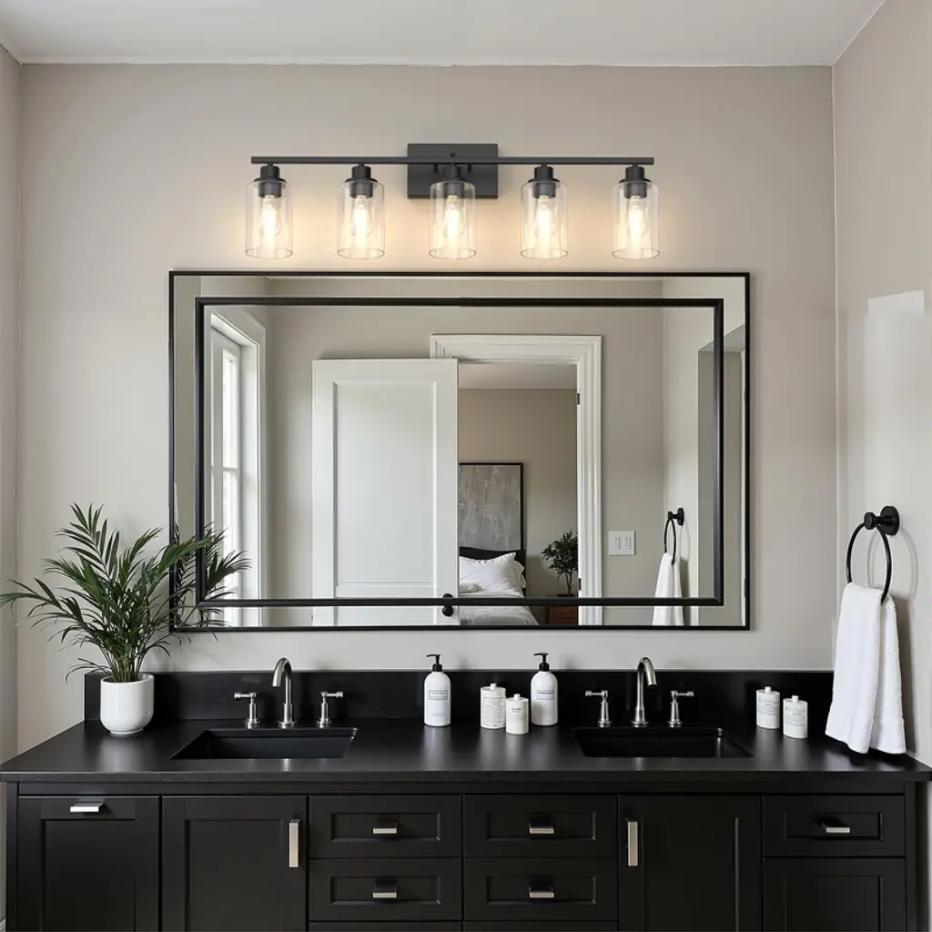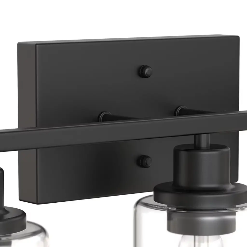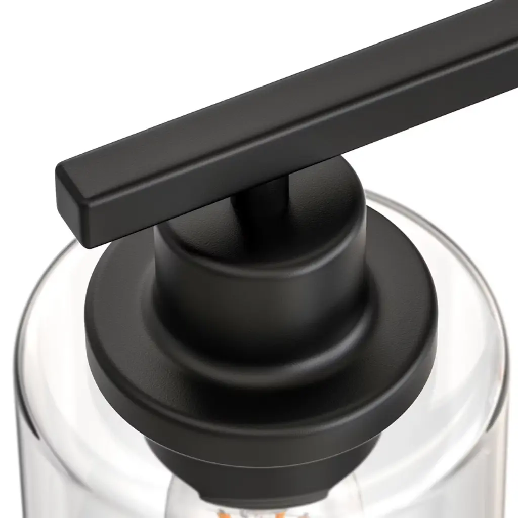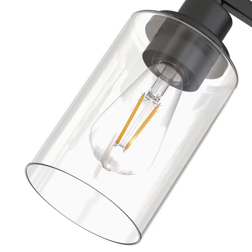 Enhance your bathroom or vanity space with this vintage industrial 5-light vanity fixture, designed to bring timeless character and modern functionality to your home. The matte black finish paired with clear cylindrical glass shades offers a bold yet elegant look, perfect for a variety of interior styles from farmhouse to modern industrial.This fixture uses five E26 base bulbs (not included), providing ample illumination and flexibility to choose your preferred brightness and color temperature.