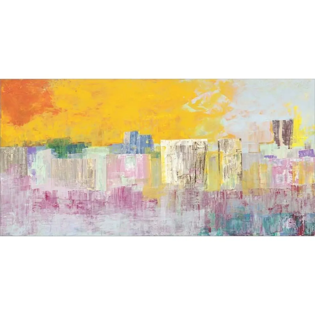 City Glow by Doris Charest is a high quality piece of framed artwork. The finished size of this piece is 24.75" X 18.75". It has a Slim Solid Black Flat with Satin Finish frame, is single matted and finished with high quality Acrylic Plexiglass. 100% Satisfaction Guaranteed.