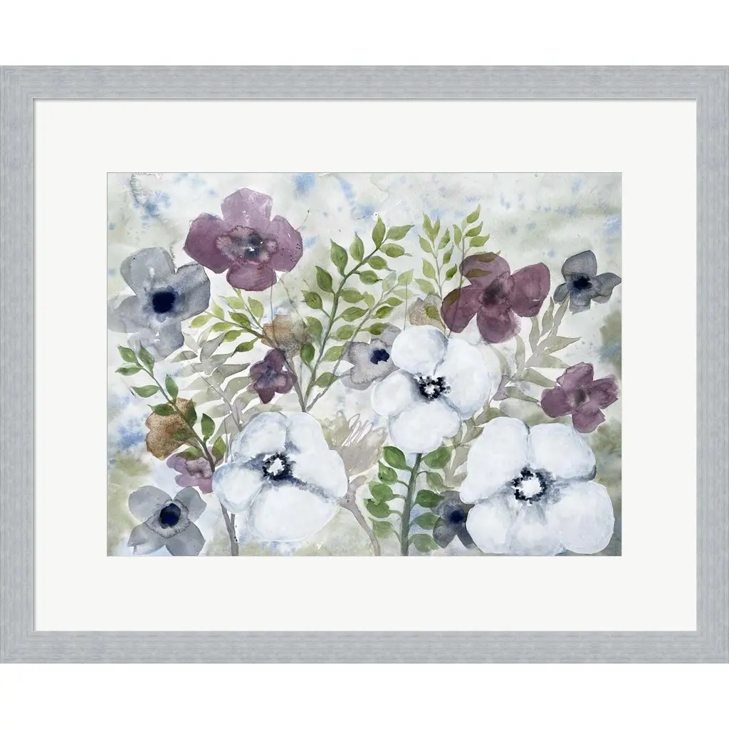 Floral Gossip 2 by Doris Charest is a high quality piece of framed artwork. The finished size of this piece is 22.25" X 18.25". It has a Slim Solid Platinum Silver frame, is single matted and finished with high quality Acrylic Plexiglass. 100% Satisfaction Guaranteed.