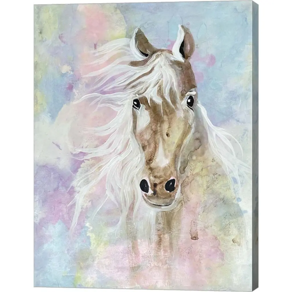 Magical Steed 1 by Doris Charest is a high quality piece of canvas artwork. The finished size of this piece is 15" X 20", and it has a depth 1.5". There is a UV protective coating over the entire image, and it is ready to hang on your wall with a Standard Drywall Screw (not included). 100% Satisfaction Guaranteed.