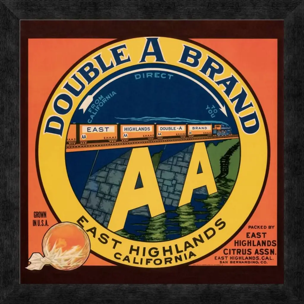 "Double A Brand Oranges" Framed Canvas Giclee By Western Litho., 18"x18"