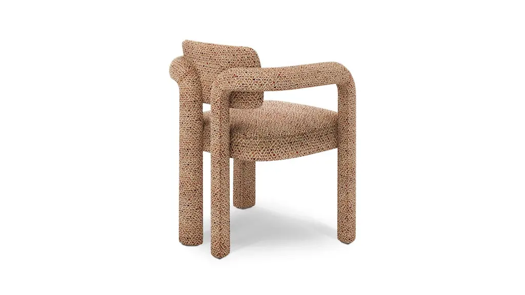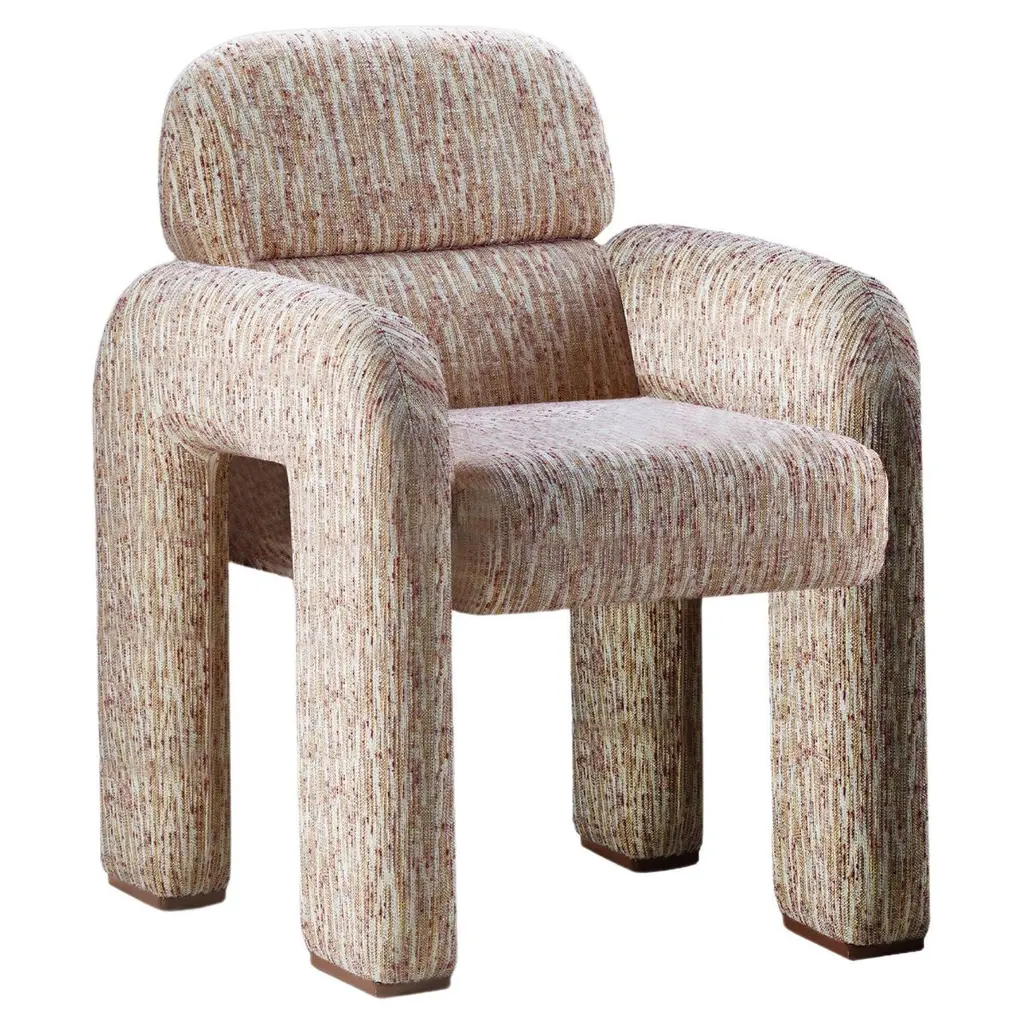 Double Arch Dining Chair In Zolan 05 Textured Upholstery by InsidherLandDimensions: D 61 x W 65 x H 76 cm.Materials: Zolan 05 upholstery.Available in different fabric options. Handmade in Portugal. Custom sizes and other finishes are available upon request. Please contact us.Inspired by this rock formation with intertwined sandstone arches, the design of the Double Arch dining chair conveys the same flat shape underneath the natural arches, showing a unique cut beneath the curvy arms that purposefully disrupts the chair’s organic aesthetic.Upholstered in an all-over ochre cotton velvet, the original Double Arch dining chair echoes the earthy hues of this remarkable landmark and combines Portuguese contemporary design with expert craftsmanship, making it perfect for luxury residential and high-end hospitality interiors.Handcrafted to the highest standards, this collectable sculptural chair reflects InsidherLand’s dedication to exclusive furniture.Created by Architect Joana Santos Barbosa in 2012, InsidherLand is a Portuguese brand of exclusive design. Drawn with the signature of the creator, the impressive range of contemporary luxury furniture, lighting, upholstery, and accessories is connected to her memories and has been highlighted for its innovative and soulful designs.Joana explores several influences from travels around the world to define her Land as a place that allows her to translate her perceptions into objects of art.The essence of InsidherLand is presented by two inspiring collections. Beyond Memory Collection is deeply influenced by organic forms of nature, legends and traditional cultures, as for the Identity Collection is molded by forms of Architecture and Art. Both collections are designed as a dialog in which nature meets strong architectural lines to create relaxed and sophisticated interiors surrounded by natural materials and meaningful art pieces.Being positioned in strategic markets of high-end luxury decoration, InsidherLand team is proud of working with the best architects and interior design studios from all over the world who seek for handmade exclusive objects that arouse emotions and stand out in exquisite spaces.We are dedicated with love and enthusiasm into every creation to surprise a sensitive but demanding public. Using the expertise of traditional craft techniques, all creations are made by the hands of Portuguese master craftsmen and jewelers who wisely sculpt them in noble materials, finalizing every detail with elegance and perfection.