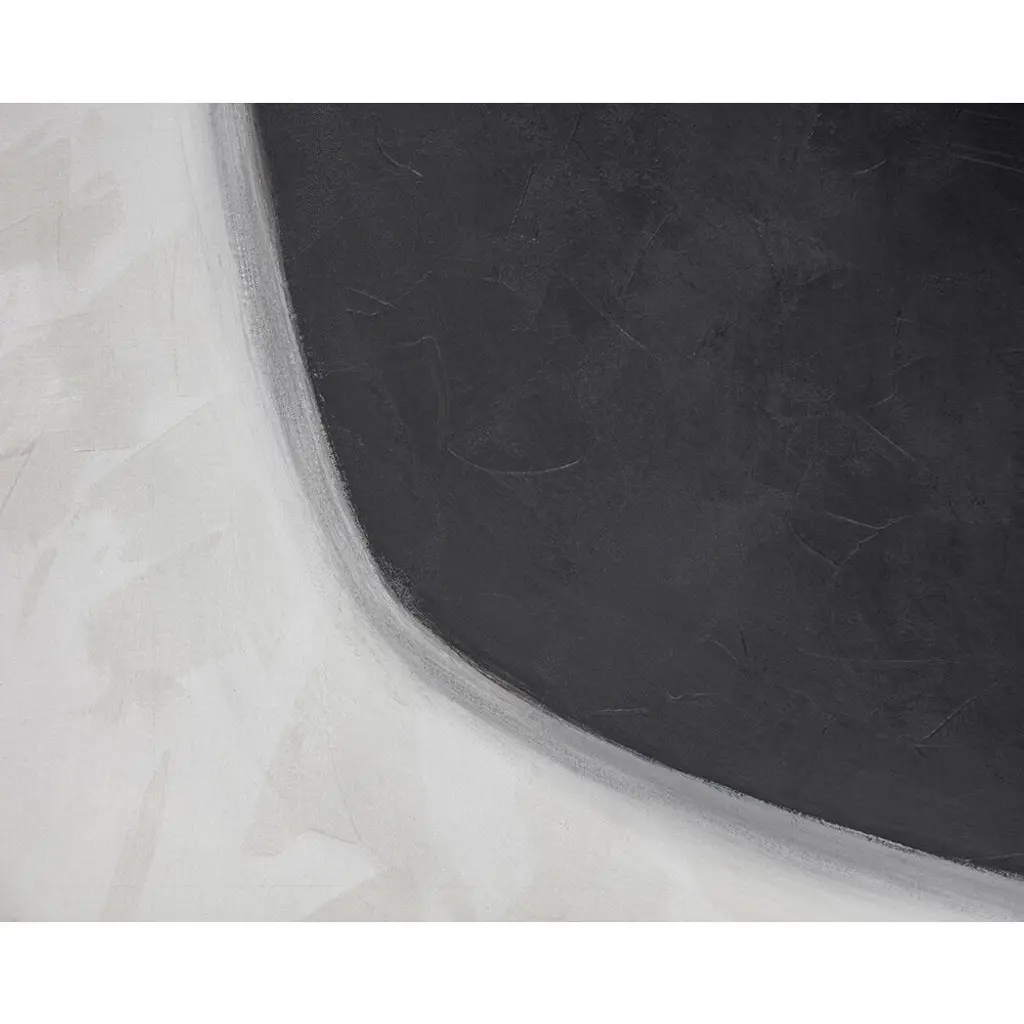 This eye-catching diptych in black and white features modern, abstract figures. A perfect addition to contemporary spaces. Features black finished wood floater frames. Each artwork is hand-painted and will feature slight variations that make every piece unique.