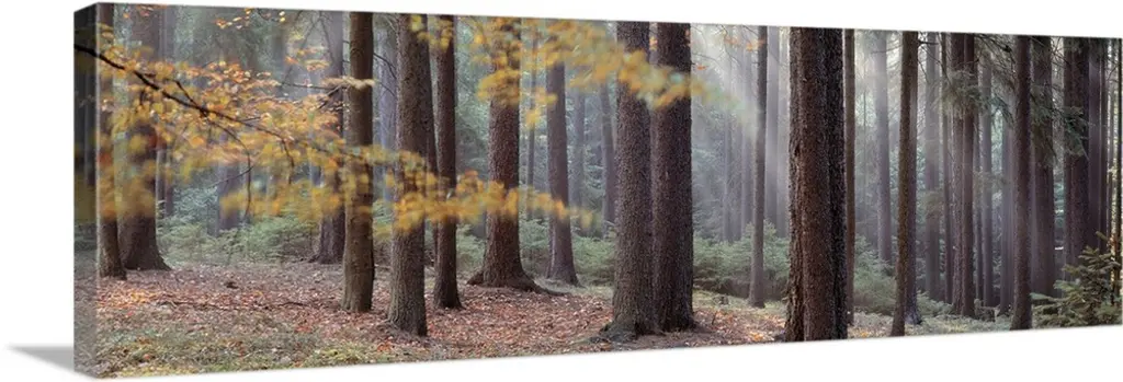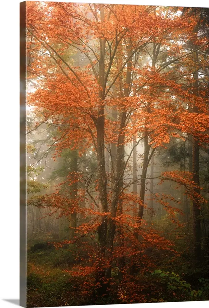 Artist: Doug CavanahSubject: LandscapeStyle: Natural ModernProduct Type: Gallery-Wrapped Canvas ArtMade in USAThis ready to hang, gallery-wrapped art piece features a tree in the center of a forest scene with red leaves.I am a seeker of fleeting moments. My quest is to capture the instant when that perfect light kisses a subject to create a moment in time of visual harmony. My photographs are a personal expression of emotions coming from finding beauty in our everyday surroundings. My insatiable desire to record the natural splendor of the world around us drives me to surrender my time and passion to photography.Giclee (jee-clay) is an advanced printmaking process for creating high quality fine art reproductions. The attainable excellence that Giclee printmaking affords makes the reproduction virtually indistinguishable from the original piece. The result is wide acceptance of Giclee by galleries, museums, and private collectors. Gallery wrap is a method of stretching an artist's canvas so that the canvas wraps around the sides and is secured a hidden, wooden frame. This method of stretching and preparing a canvas allows for a frameless presentation of the finished painting.