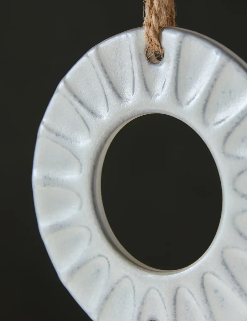 Bring a note of lightness and serenity to your wall decor with a nod to folk art tradition. A dove hangs in line with simple geometric elements adorned with textural details in this beautifully handcrafted design. This wall hanging is from our exclusive Sarah Sherman Samuel collaboration and features all the trademarks of her warm, edited style.
