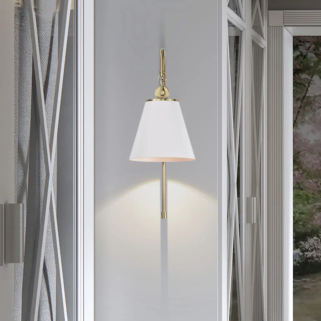 Dover 1-Light Wall Sconce - White with Vintage Brass